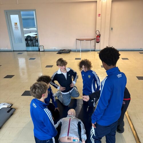 Au cours de cette action, les élèves ont réalisé un parcours en équipe et ont été sensibilisés aux gestes de premiers secours (éveil).