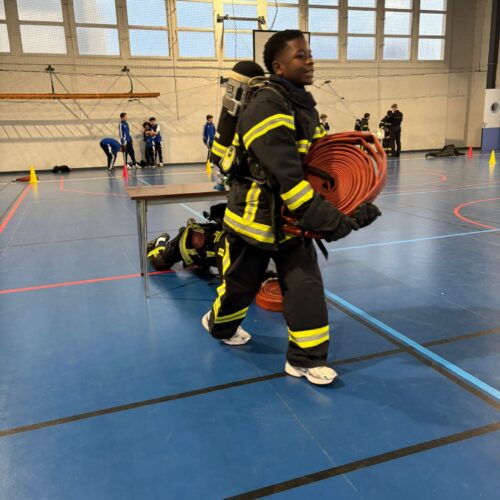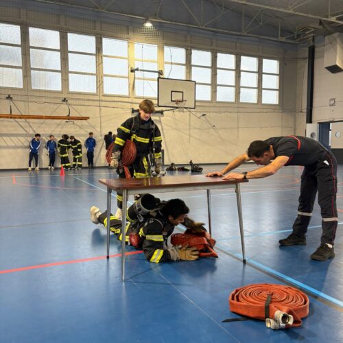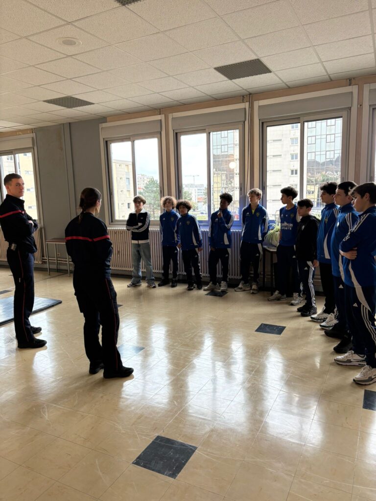 Dans le cadre des actions de citoyenneté menées par la section sportive, les élèves de 4e et 3e ont participé à une intervention axée sur le travail en équipe et la cohésion de groupe, en collaboration avec les sapeurs-pompiers de Clermont-Ferrand.