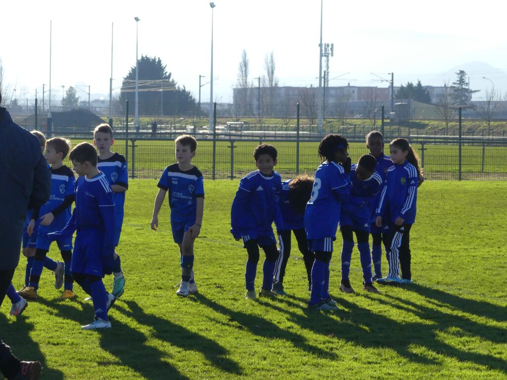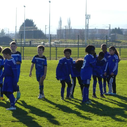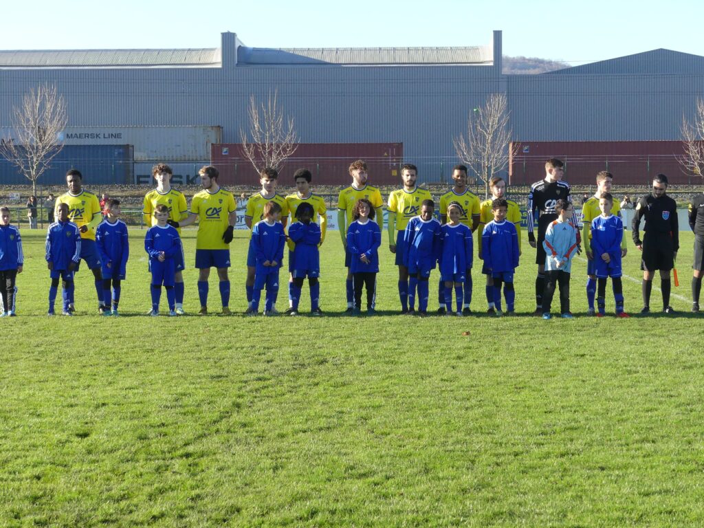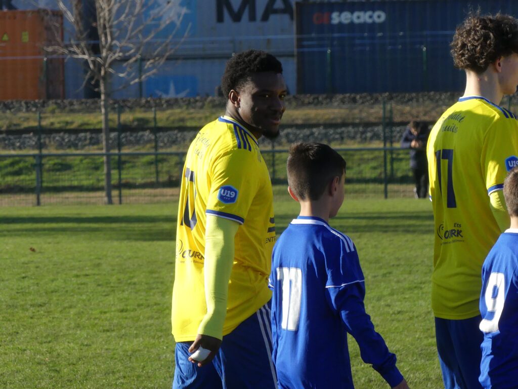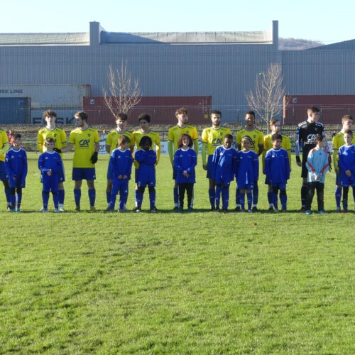 À noter que une fois n’est pas coutume, nos joueurs sont entrés cette fois-ci avec nos U8, coachés notamment par notre attaquant George Nouga, ainsi que des joueurs du Groupement Vallée de l’Authre, club où a commencé notre numéro 9 Julian Parro.