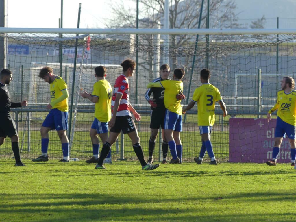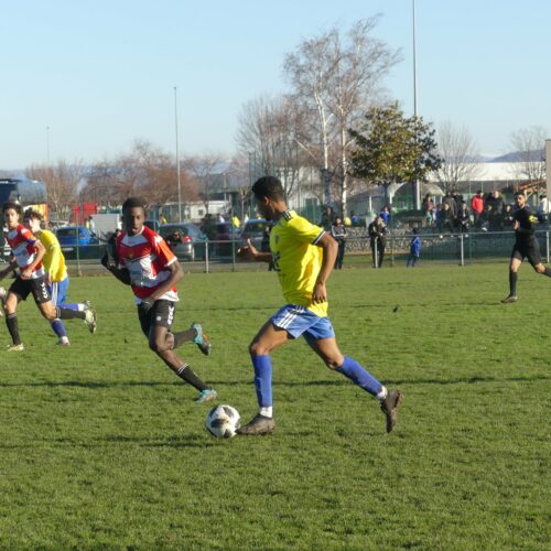 Mais ils ne se laissaient pas abattre et montraient comme à chaque match cette envie sans faille de changer les choses. À peine le temps de revenir que Loris Monney remettait immédiatement l’équipe dans le match avec une frappe bien placée dans la surface qui remettait les deux équipes à parité. Nos joueurs poussaient, se procuraient des occasions et tentaient de développer du jeu tant bien que mal sur cette pelouse, sans pouvoir pour autant marquer ce 2e but.