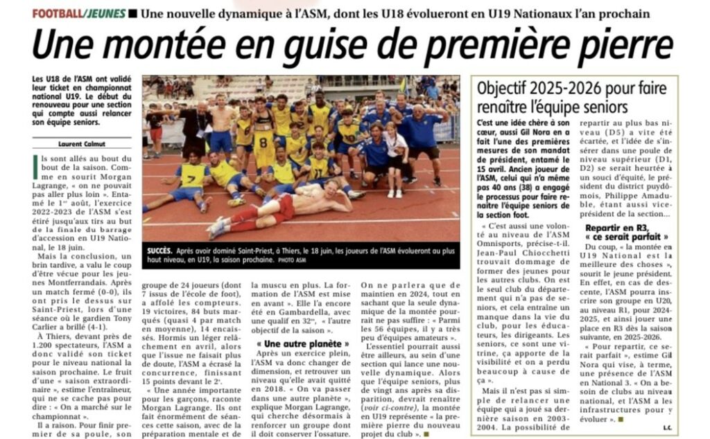 Les objectifs de perfectionner le passage au foot à 11 pour les U14 et de conduire progressivement ces jeunes vers des exigences de compétition doivent permettre de ramener l'ASM vers le championnat national U17 en améliorant notre formation pour le niveau supérieur.