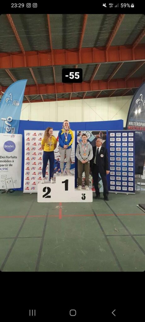Célia Blanchet devient championne de France de sa catégorie en 55 kg, en soulevant 58 kg à l’arraché et 67 kg à l’épaulé-jeté.