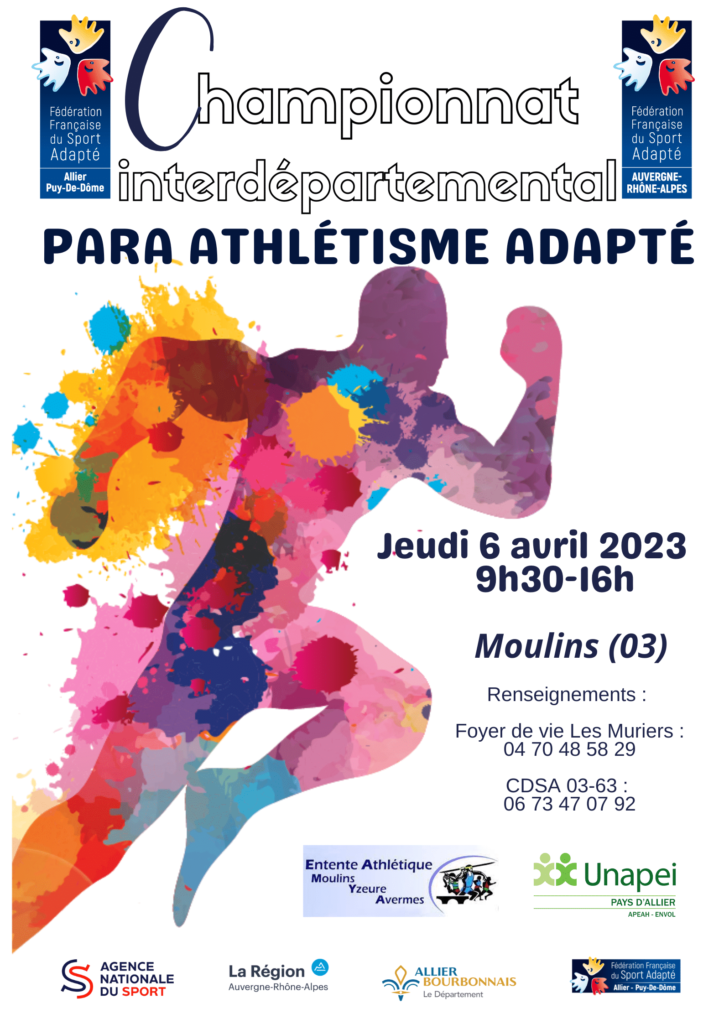 Jeudi 6 avril 2023, Baptiste Communal, représentera notre club lors du Championnat Interdépartemental de para-athlétisme adapté à Moulins.