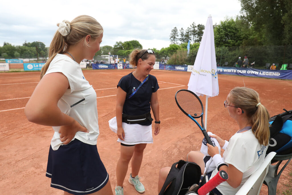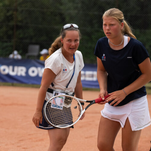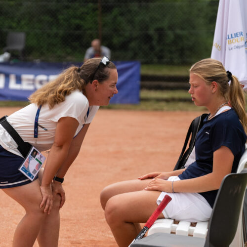 Tout au long du match, nous restons sur le banc pour donner des conseils aux changements de côté ainsi que des encouragement et des mots qui rassurent. Entre les matchs nous organisons des moments de jeu ensemble. En fin de journée, c’est débriefing et projection sur la journée du lendemain : matchs à jouer (simple et double), heure de levé et d’échauffement pour chacun.
