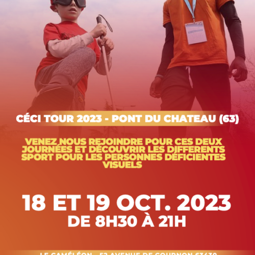 Le CéciTour 2023, événement organisé par la Fédération Française Handisport, s’arrête prêt de Clermont-Ferrand. Les 18 et 19 octobre 2023 de 08h30 à 21h, venez découvrir les différents sports pour les personnes déficientes visuels !