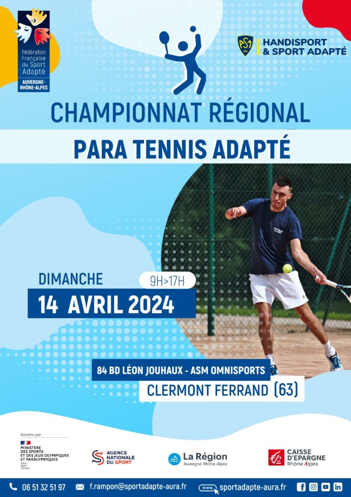 Nos sections ASM Tennis & ASM Handisport & Sport Adapté accueillent cette année le Championnat Régional de Para Tennis Adapté qui se tiendra le dimanche 14 avril de 9h à 17h !