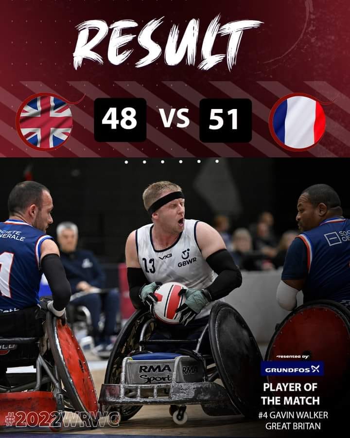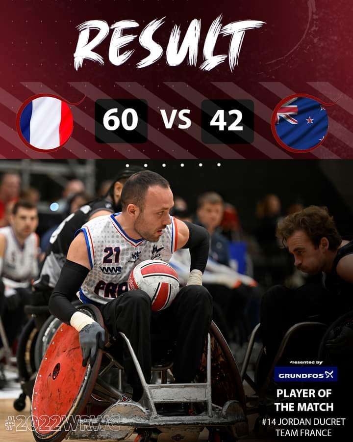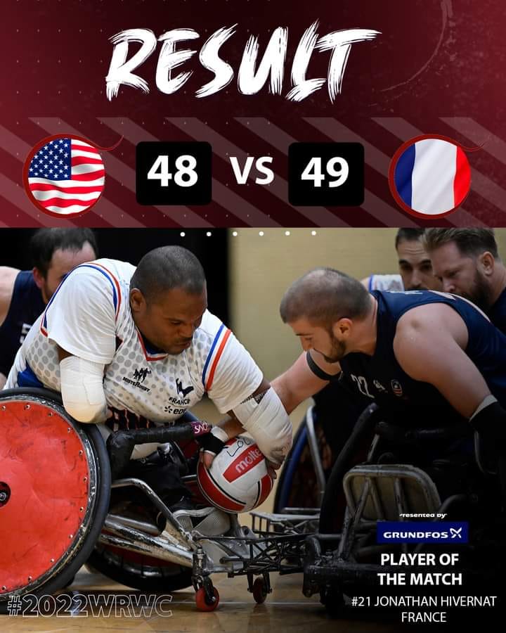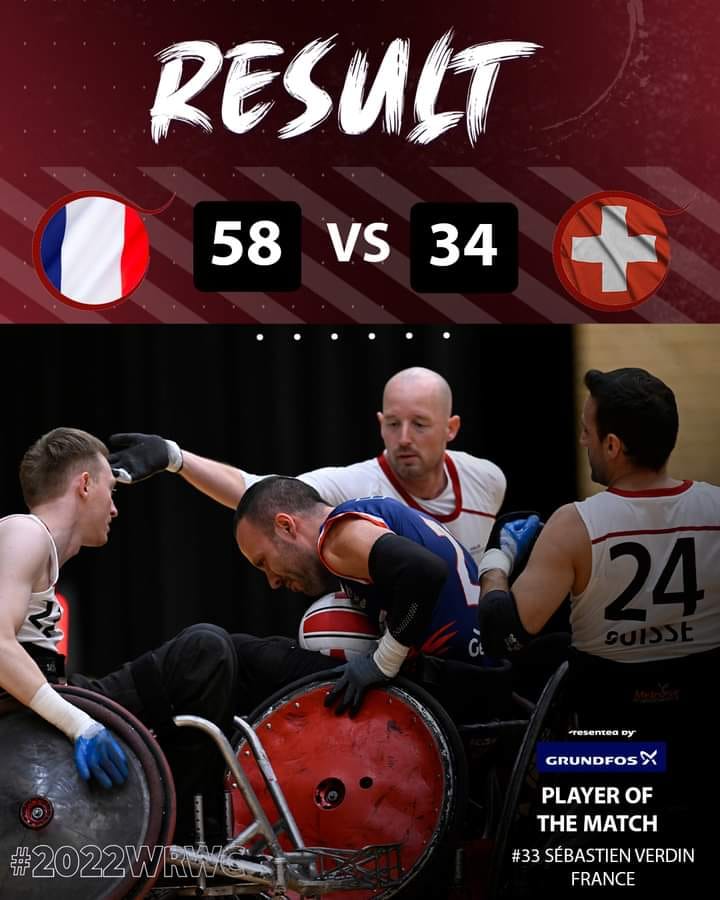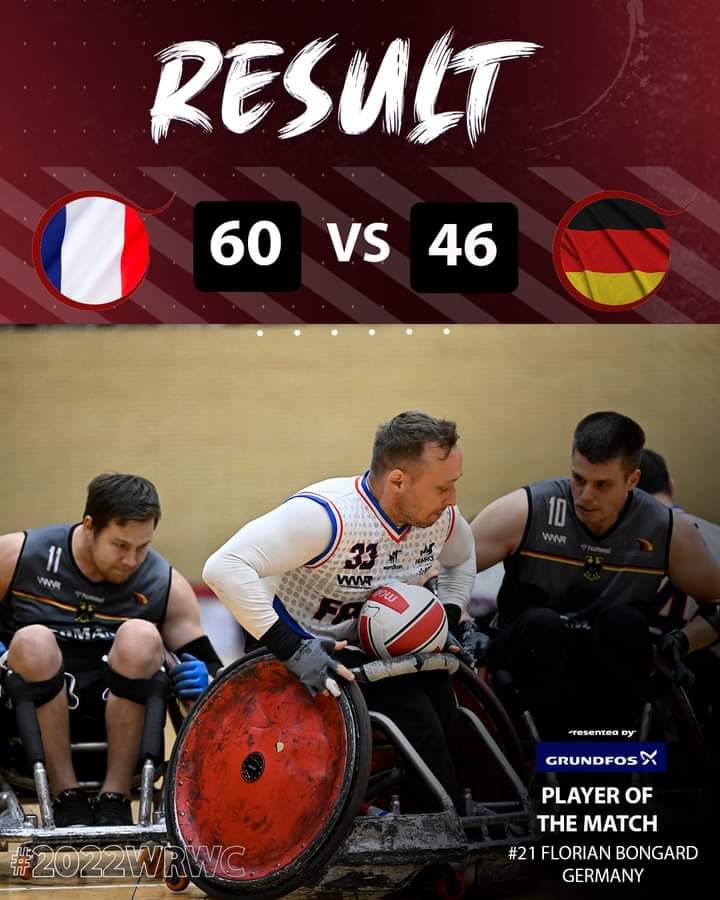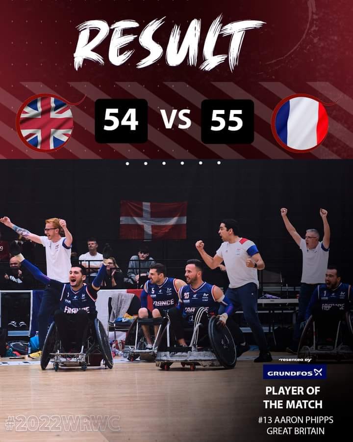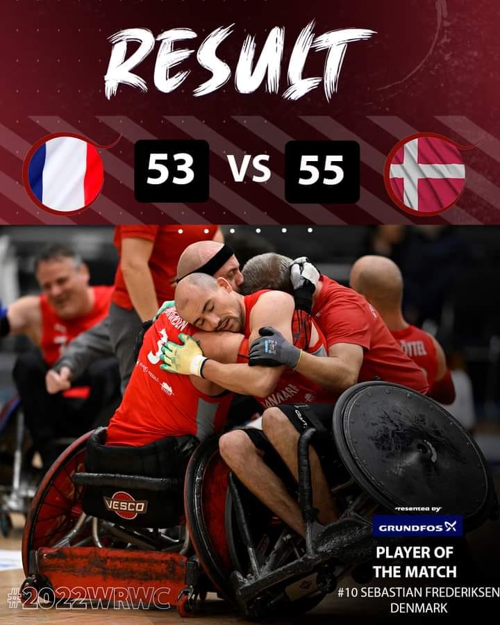 Le Championnat du monde de rugby fauteuil s’est déroulé du 10 au 16 octobre 2022 à Velje au Danemark.
