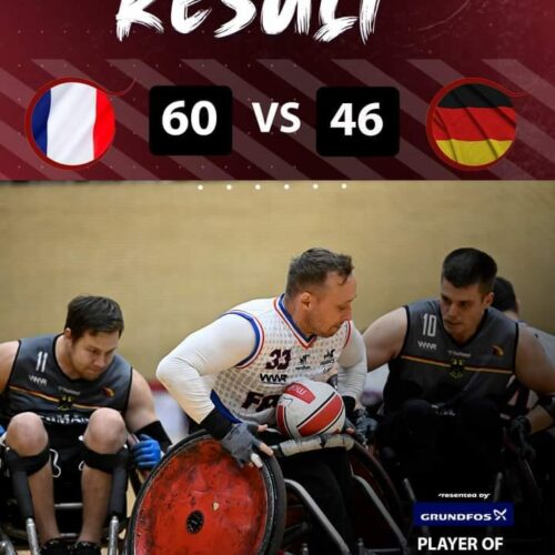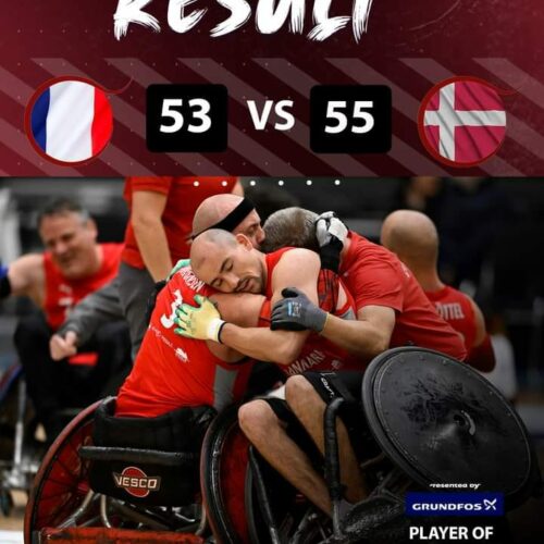 La semaine fut intensse pour l’équipe de France de rugby fauteuil et nos 2 asémistes Adrien Chalmin et Nicolas Valentim au Danemark pour disputer le Championnat du monde de rugby fauteuil.