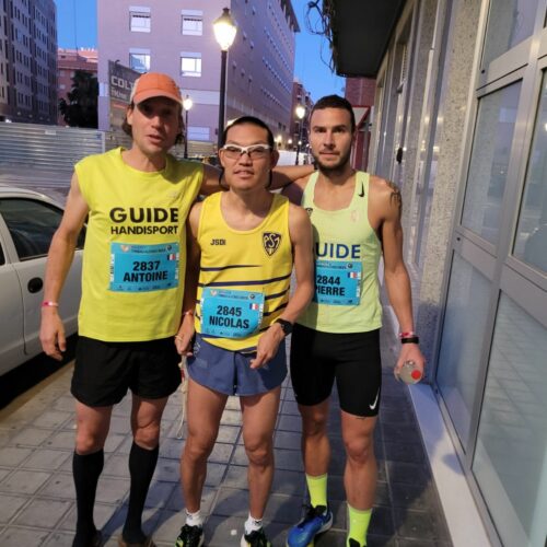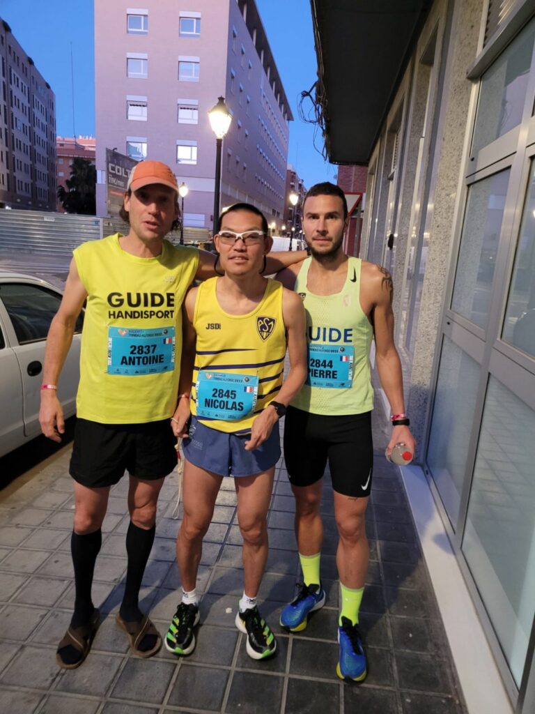 Nicolas, accompagné de ses deux guides, a réalisé sa meilleure performance en courant 42 km en 2h 42 minutes et 56 secondes !