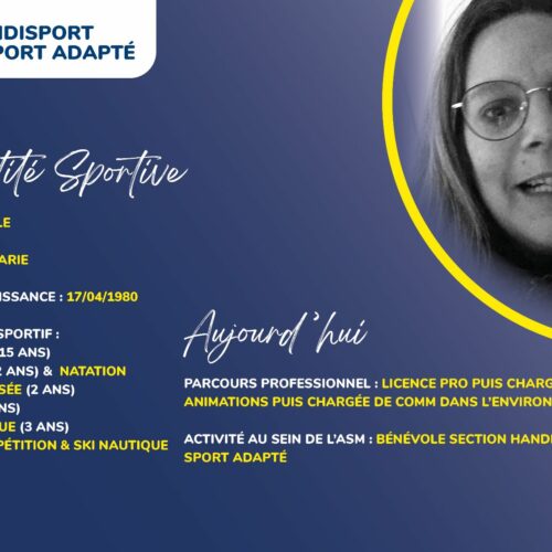 Je suis bénévole à la section ASM Handisport et Sport Adapté depuis 2016. C’est lors du forum d’Handi-Sup Auvergne, pour l’emploi des personnes handicapées qu’une personne de la section est venue me demander si je ne voulais pas faire du bénévolat chez eux. Ayant eu une éducation sportive et ayant pratiqué beaucoup de disciplines sportives avant mon opération en 2002, j’ai tout de suite été séduite par cette proposition.