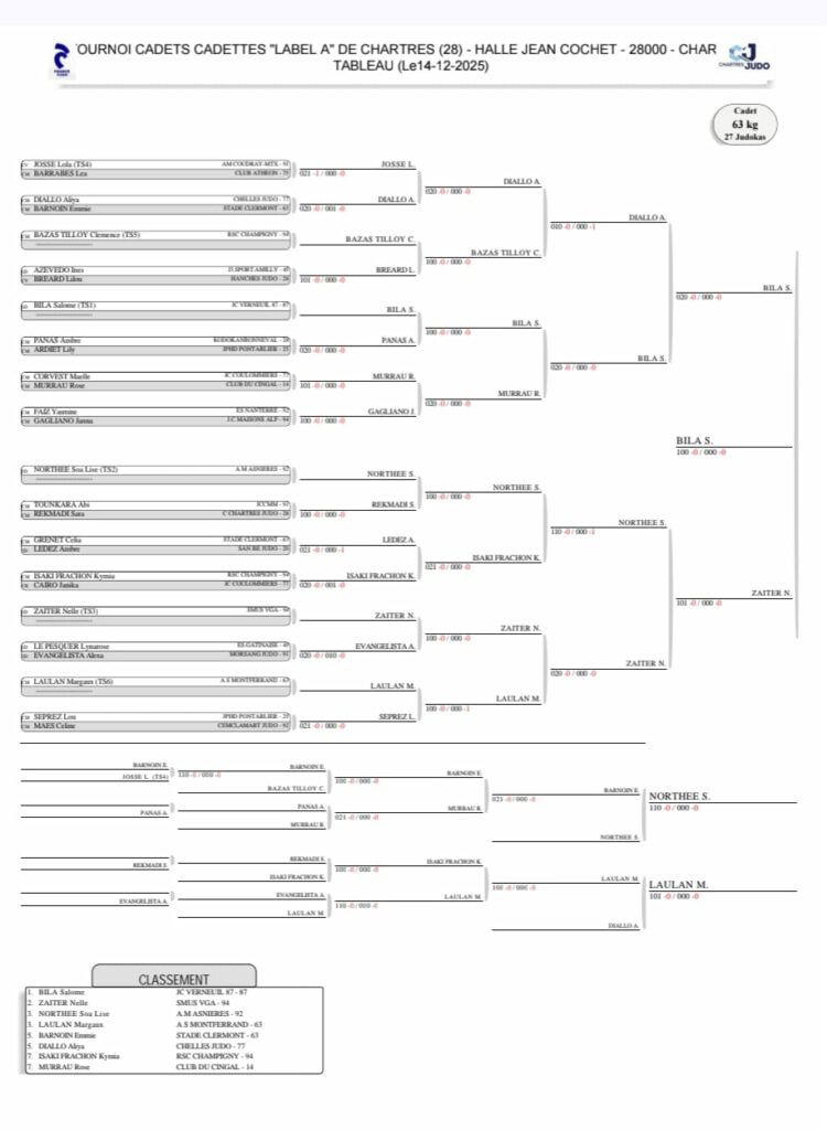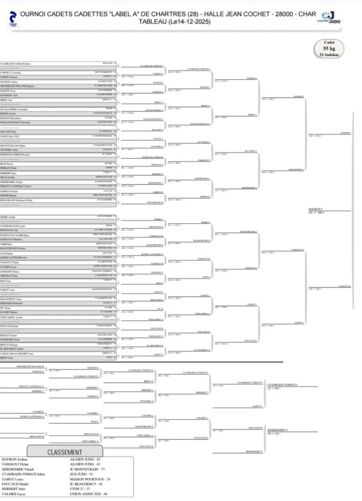 Ce dimanche 14 décembre 2025, le 2ᵉ Tournoi Cadets-Cadettes Label A de Chartres (28) a rassemblé près de 600 judokas venus de toute la France. Répartis sur huit surfaces, les compétiteurs ont offert une journée de judo de haut niveau.