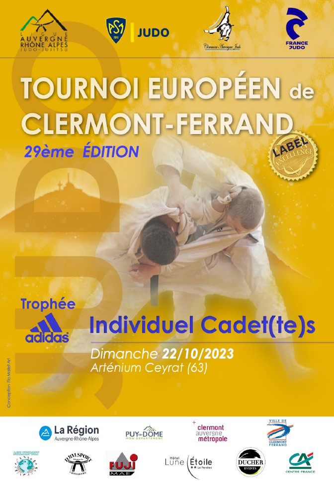 L’entrée du tournoi européen de judo cadets/cadettes de Clermont-Ferrand label excellence 2022 est gratuite. Les organisateurs vous attendent nombreux sur cet évènement majeur de la saison 2023-2024.