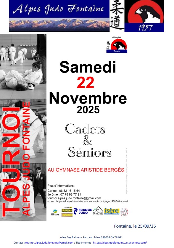 Ce samedi 22 novembre, le dojo de Fontaine vibrait fort avec le tournoi Cadets(tes) et Seniors Alpes Judo Fontaine.