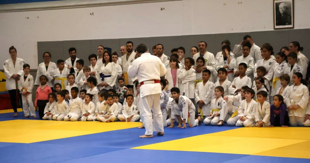 Une centaine de judokas s’est retrouvée sur les tatamis jaunes & bleus 🟡🔵 afin de pratiquer du judo jujitsu en famille 💪