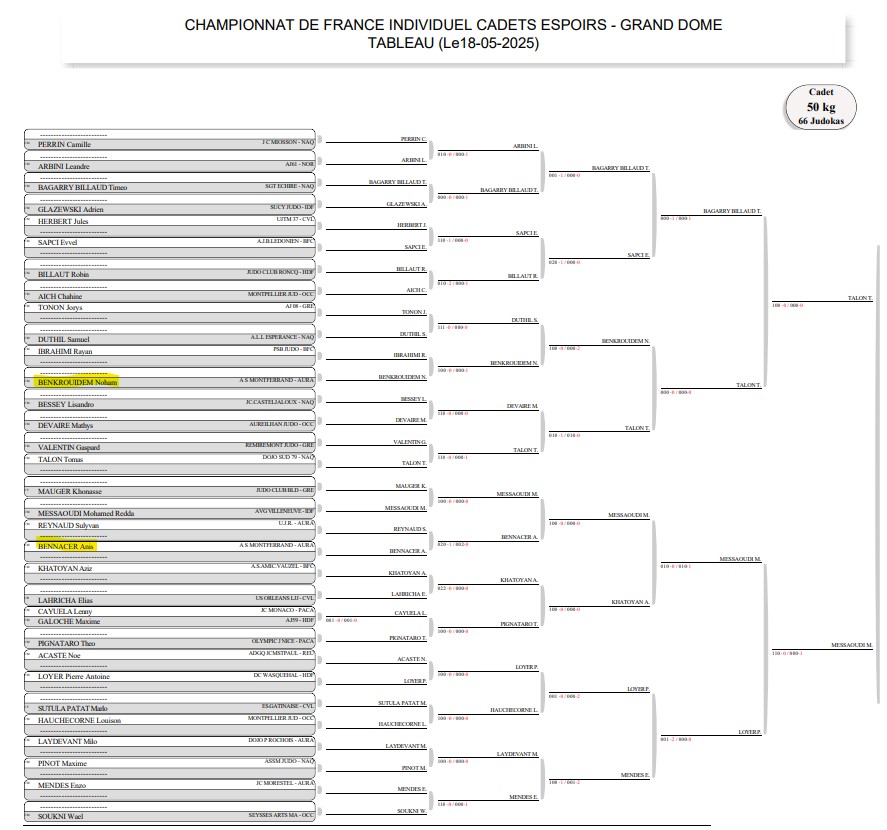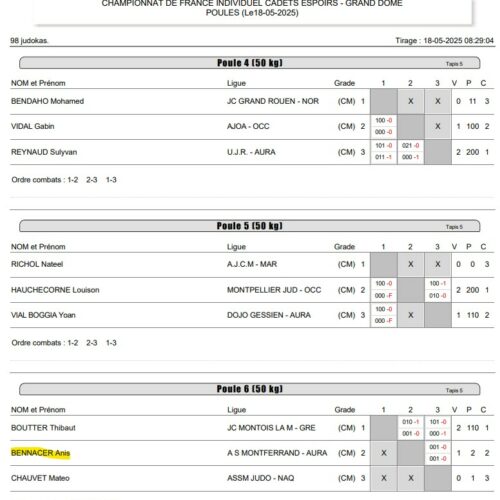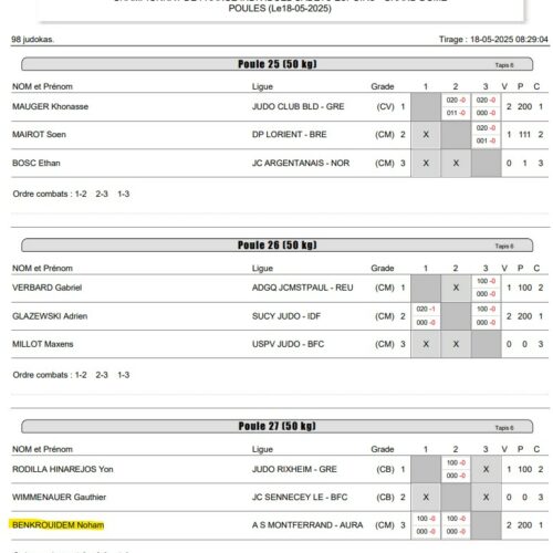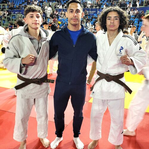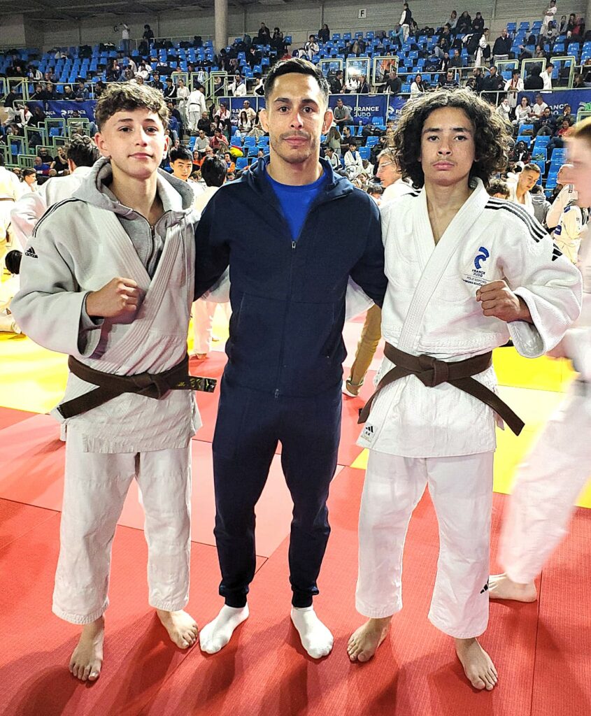 Notre club 💛💙 avait deux qualifiés Anis BENNACER et Noham BENKROUIDEM (voir l’actu 👉 https://www.asm-omnisports.com/judo/actualites/anis-et-noham-qualifies-a-la-coupe-de-france-espoirs/ ). Ils étaient accompagnés par Kévin AZEMA. Anis et Noham combattent dans la même catégorie des -50 kg.