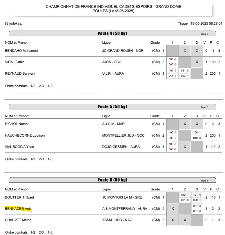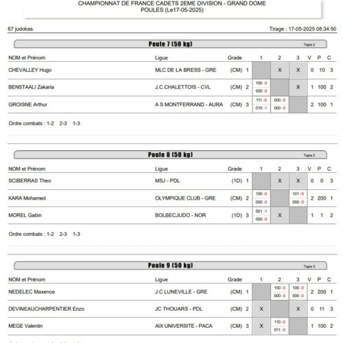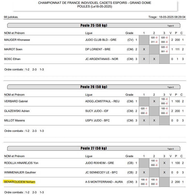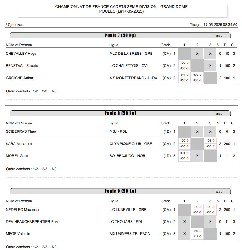 Près de 1380 combattants 🥋 étaient présents à ce grand rendez-vous national. Le format de cette compétition : démarrage en poule de trois judokas puis les deux premiers sortent en tableau sans repêchage.