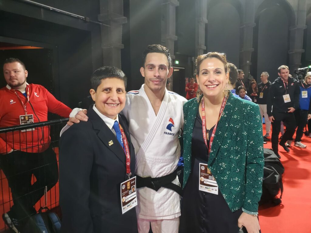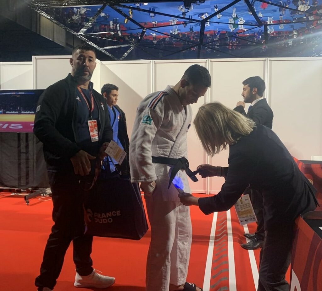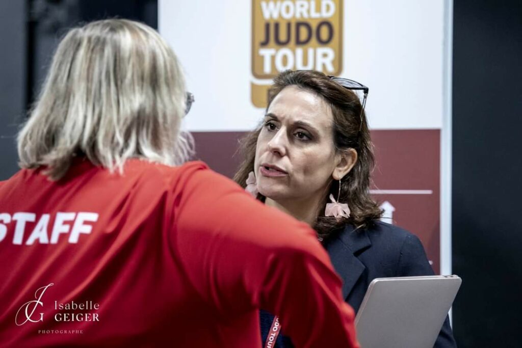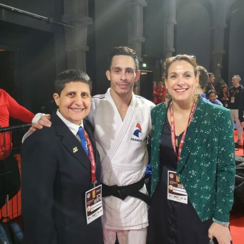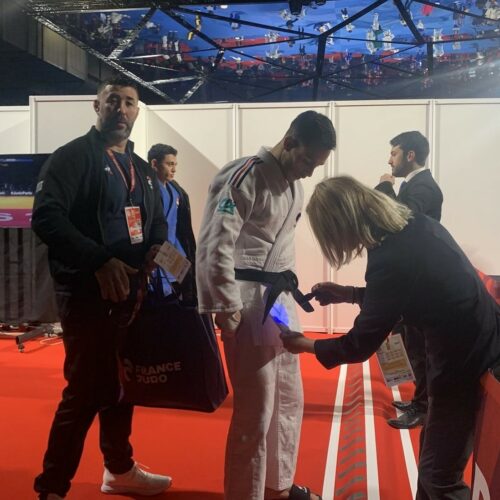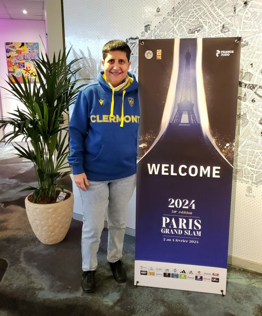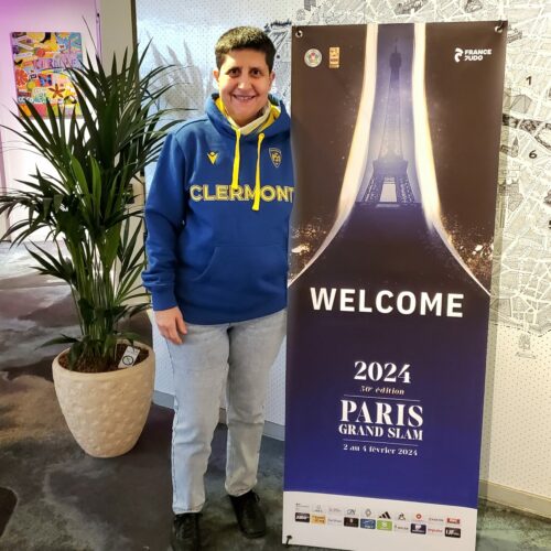 - Christelle Vialis, notre arbitre continental était dans l’équipe « aide arbitrage». Elle a assuré le flux des judokas pour les pesées, la vérification des judogis (norme, taille) en chambre d’appel. « C’est un immense honneur pour moi de pouvoir aider à l’organisation du Paris Grand Slam et de vivre ce gros évènement de l’intérieur. Grâce à cette mission, j’ai la chance d’être au plus près des champions et des entraîneurs français et étrangers, j’ai des étoiles plein les yeux ! Étant responsable des jeunes au sein de la CNA (Commission Nationale d’Arbitrage de France Judo), j’ai également accueilli des jeunes officiels issus de 5 clubs de la ligue CVL, l’école d’arbitrage de territoire « À vos marques, prêts, arbitrez ! » : visites dans les coulisses du plus grand tournoi du monde (salle d’échauffement, vestiaires, plateau de compétition…), explication et démonstration de rôle de l’équipe « aide arbitrage » ainsi que des échanges avec des membres de la CNA. Les enfants étaient émerveillés. »