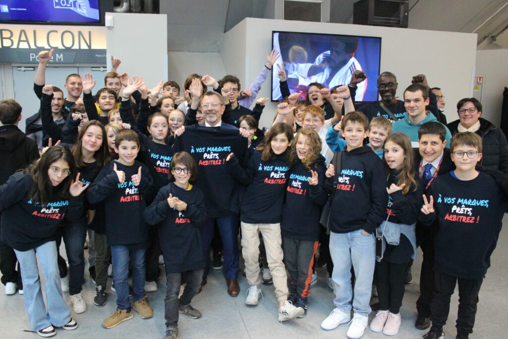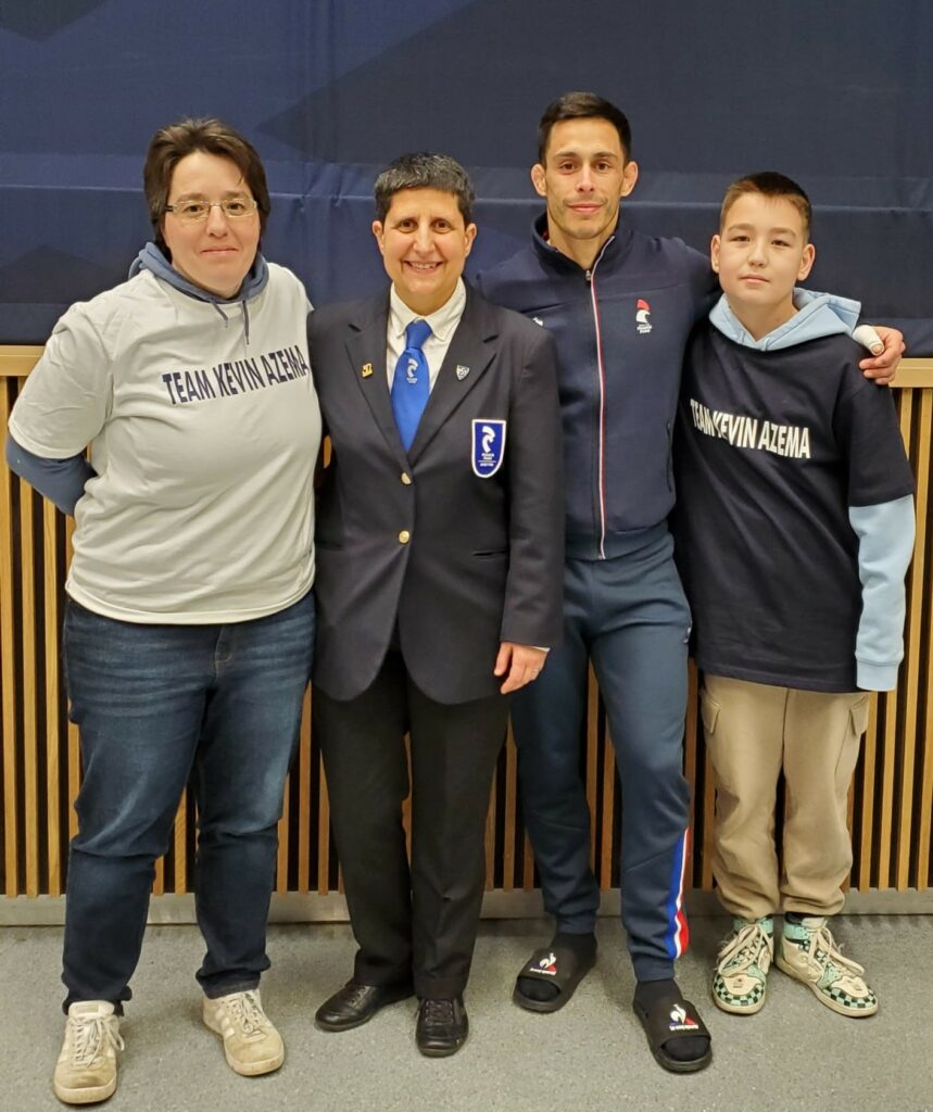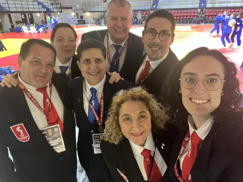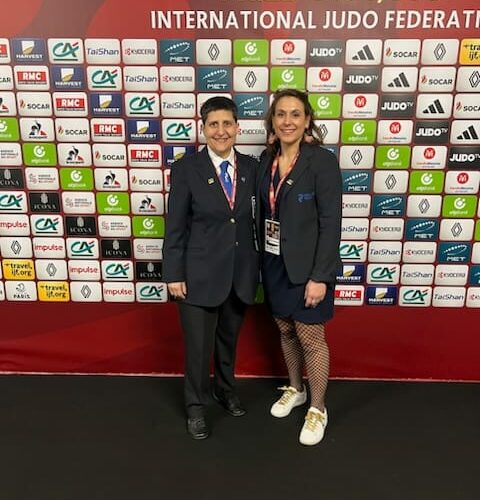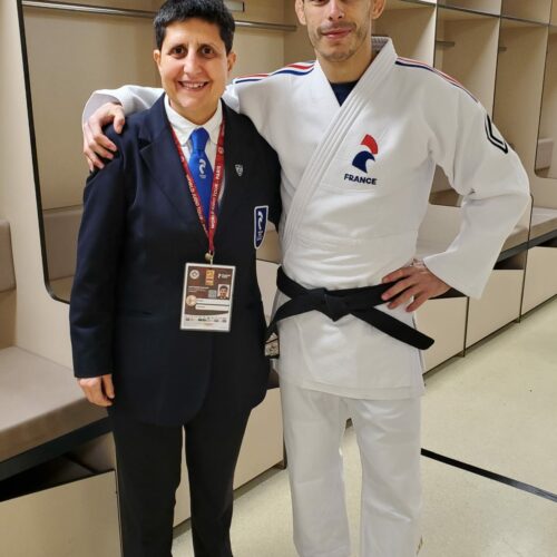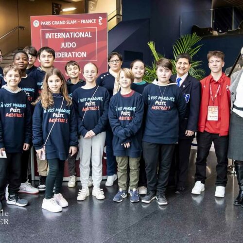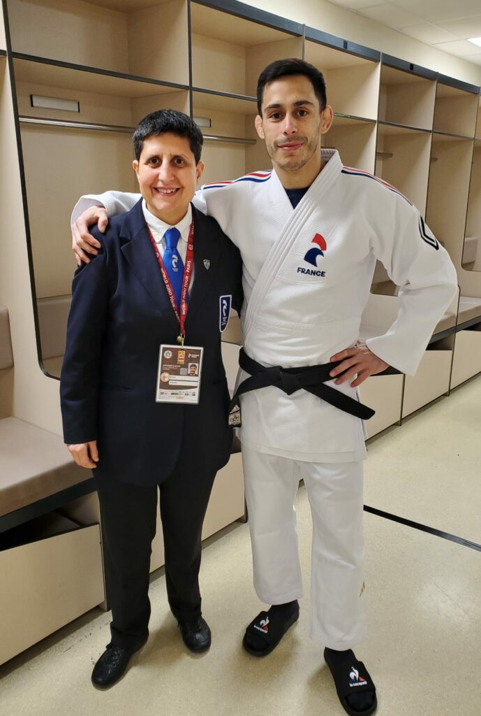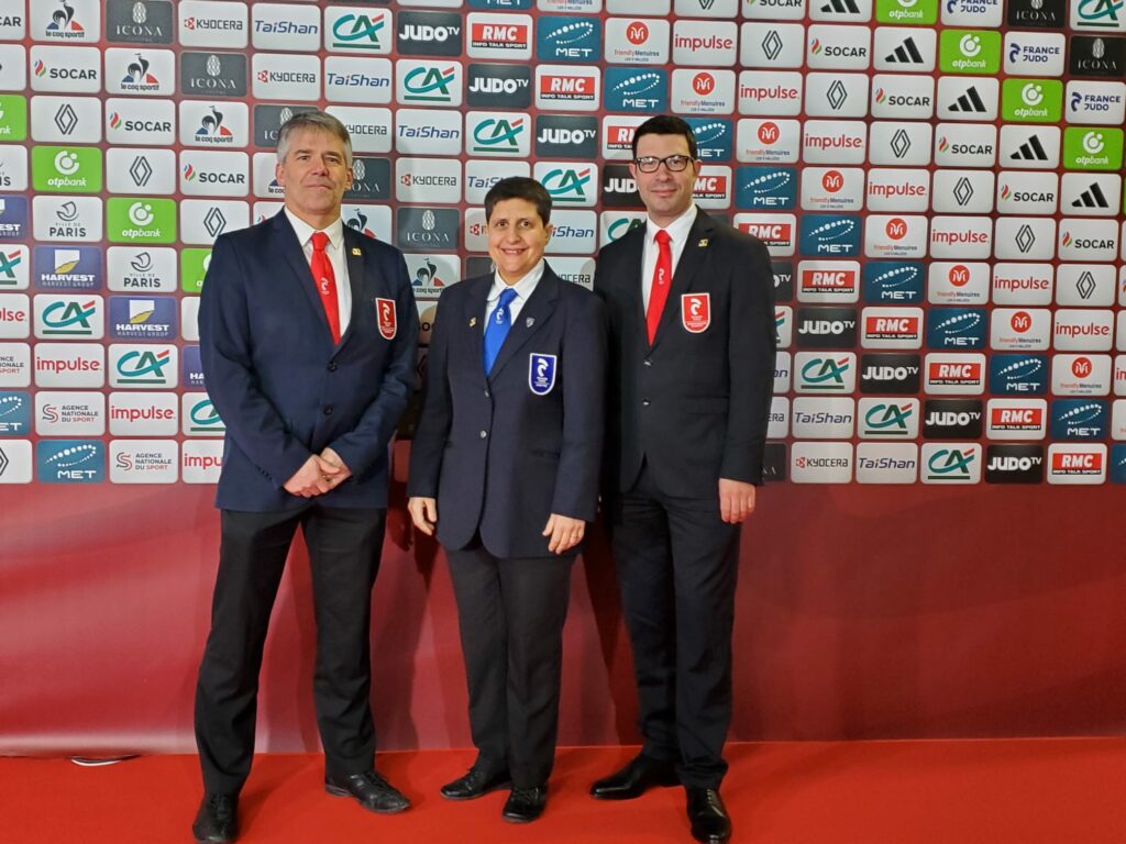 - Christelle Vialis, notre arbitre continental était dans l’équipe « aide arbitrage». Elle a assuré le flux des judokas pour les pesées, la vérification des judogis (norme, taille) en chambre d’appel. « C’est un immense honneur pour moi de pouvoir aider à l’organisation du Paris Grand Slam et de vivre ce gros évènement de l’intérieur. Grâce à cette mission, j’ai la chance d’être au plus près des champions et des entraîneurs français et étrangers, j’ai des étoiles plein les yeux ! Étant responsable des jeunes au sein de la CNA (Commission Nationale d’Arbitrage de France Judo), j’ai également accueilli des jeunes officiels issus de 5 clubs de la ligue CVL, l’école d’arbitrage de territoire « À vos marques, prêts, arbitrez ! » : visites dans les coulisses du plus grand tournoi du monde (salle d’échauffement, vestiaires, plateau de compétition…), explication et démonstration de rôle de l’équipe « aide arbitrage » ainsi que des échanges avec des membres de la CNA. Les enfants étaient émerveillés. »