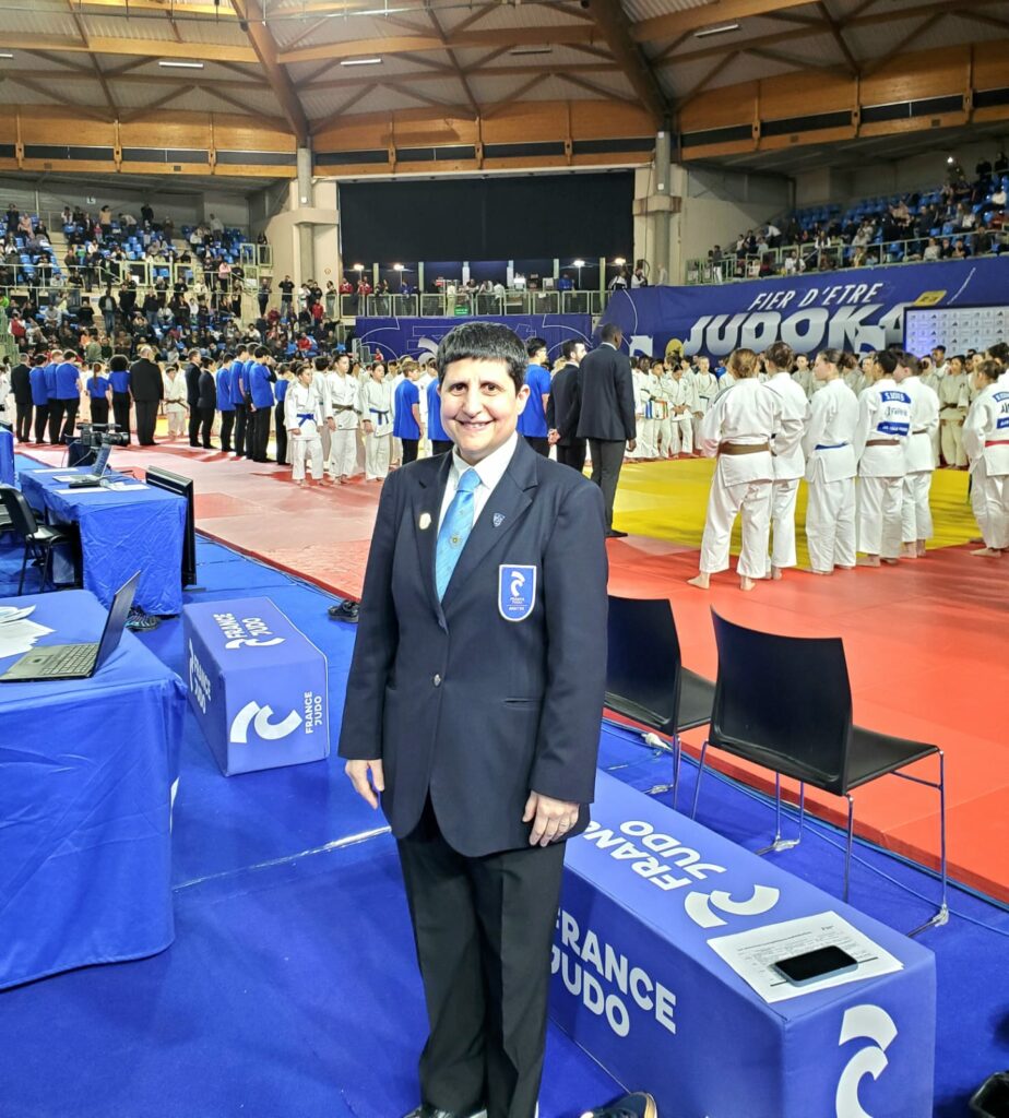 Christelle est bénévole 🥋 dans notre section et au sein des instances fédérales de judo au niveau national et régional. Elle est membre de la CNA (Commission Nationale d’Arbitrage) où elle est en charge de la Commission des jeunes officiels. Ce week-end, les 22 & 23 mars 2025 avait lieu la Coupe de France Minimes à Villebon-sur Yvette (91) au Grand Dôme. Cette Coupe était essentiellement arbitrée par des jeunes arbitres et les tables par des jeunes Commissaires Sportifs (CS) cadets venus de tout l’hexagone, de Corse, de Guyane et de l’île de la Réunion. Christelle était la responsable de ces 70 officiels cadets 👍