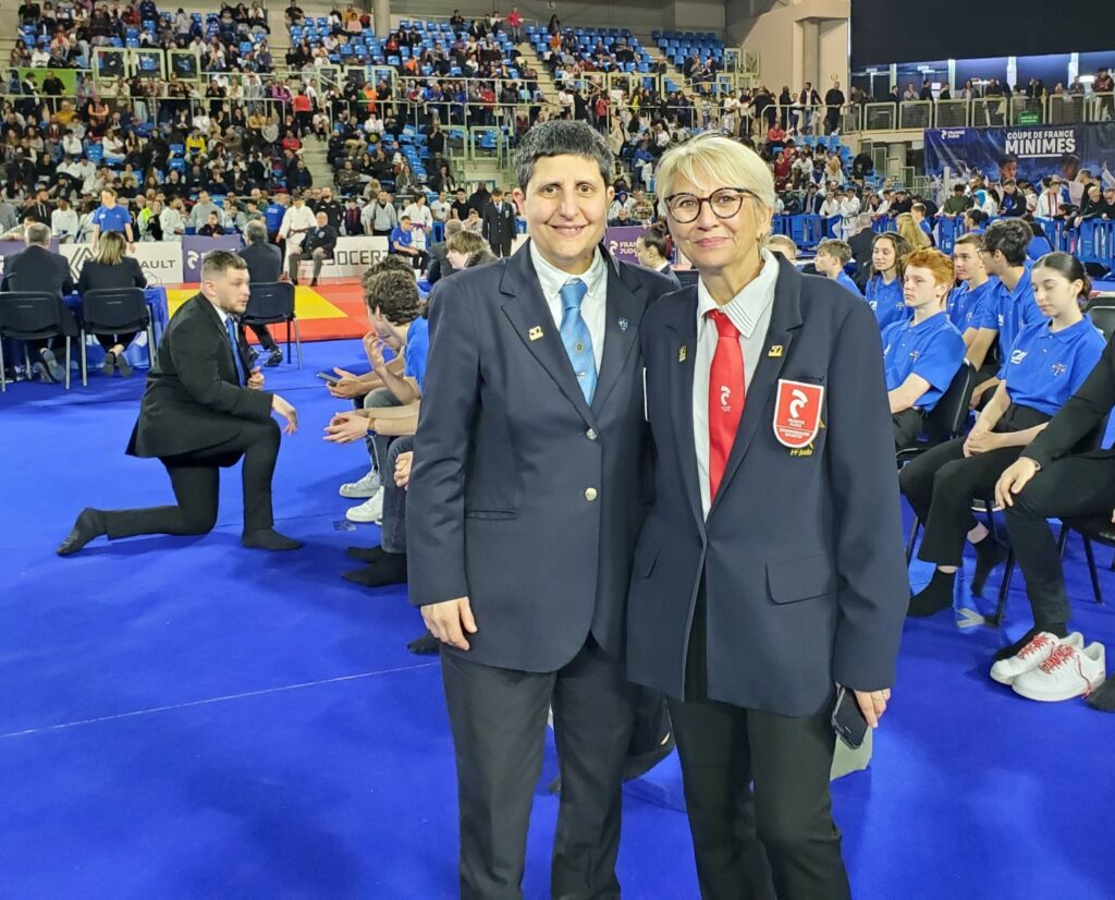 Christelle est bénévole 🥋 dans notre section et au sein des instances fédérales de judo au niveau national et régional. Elle est membre de la CNA (Commission Nationale d’Arbitrage) où elle est en charge de la Commission des jeunes officiels. Ce week-end, les 23 & 24 mars 2024 avait lieu la Coupe de France Minimes à Villebon-sur Yvette (91) au Grand Dôme. Cette Coupe était essentiellement arbitrée par des jeunes arbitres et les tables par des jeunes Commissaires Sportifs (CS) cadets venus de tout l’hexagone, de Corse, de Guyane et de l’île de la Réunion. Christelle était la responsable de ces 70 officiels cadets 👍