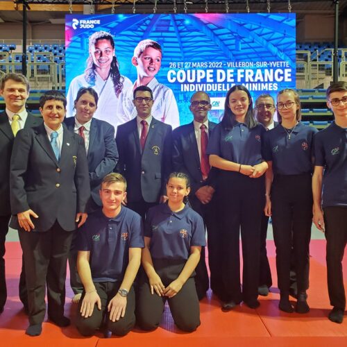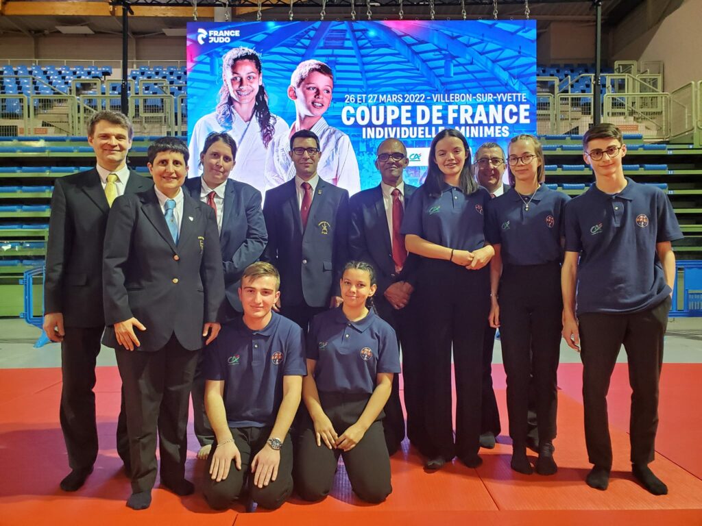 Christelle est membre de la CNA (Commission Nationale d’Arbitrage). Elle est chargée, entre-autres, de la Commission des jeunes arbitres. Ce week-end, les 26 & 27 mars 2022 avait lieu la Coupe de France Minimes à Villebon (91) au Grand Dôme. Cette Coupe était essentiellement arbitrée par des jeunes arbitres cadets venus de l’hexagone, de Corse et de l’île de la Réunion. Christelle était la responsable de ces 54 arbitres cadets.