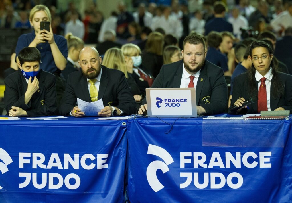 Je suis responsable des jeunes arbitres au niveau national. J’ai donc assuré l’accueil de tous ces jeunes. Je leur ai fourni leur polo, leur clé de chambre, leurs tickets de repas, leur répartition sur les tapis et les différents horaires (navettes hôtel-Grand Dôme, réunions des arbitres, les débriefing, etc…). J’ai géré la logistique du week-end et, bien sûr, l’accompagnement au bord des tatamis de tous ces arbitres cadets. Mais je n’étais pas toute seule. J’étais assistée de Anne-Marie Duconger, Akila Zouaoui et de Jean-Jacques Rusca.