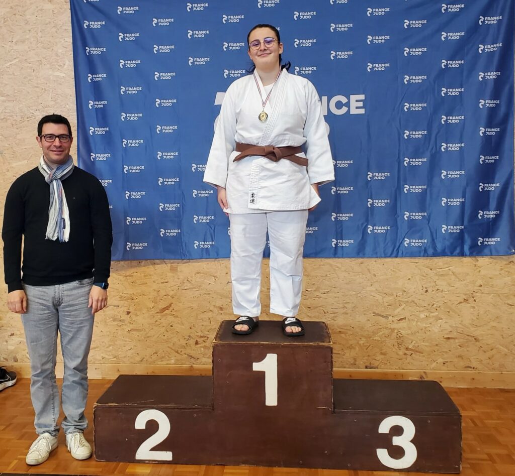 - 🥇 Ilohane DA SILVA en + 78kg, était venue pour faire des combats avec des féminines plus aguerries afin d’essayer les enchaînements appris à l’entraînement. Malheureusement, elle se retrouve toute seule dans sa catégorie de poids. Elle est donc 1ère et qualifiée pour la phase régionale AURA qui aura lieu le dimanche 19 février 2023 à Montélimar (26). Cette qualification est un plus pour Ilohane qui n’est que cadette 2ème année. Son objectif reste le championnat de France cadettes.
