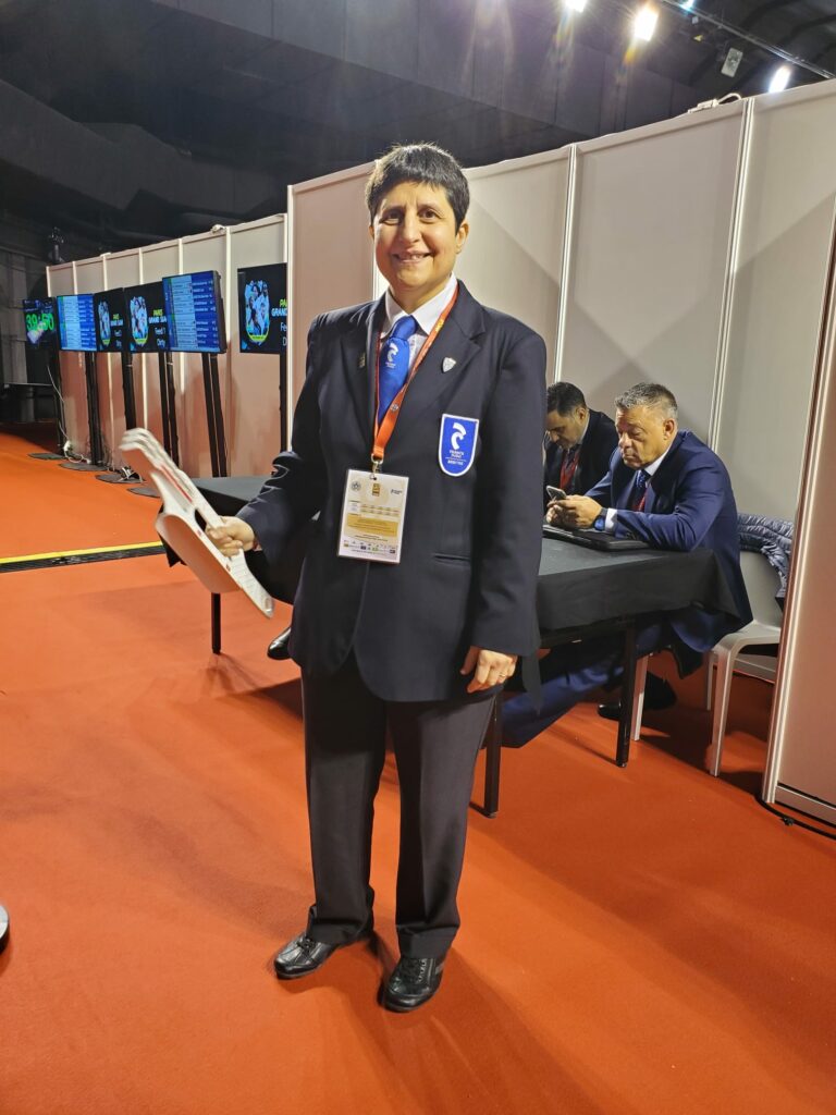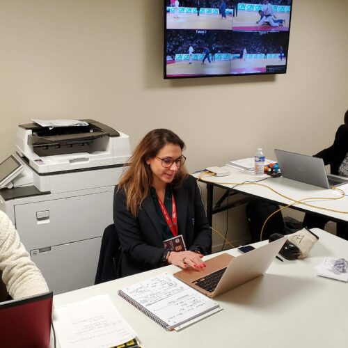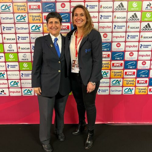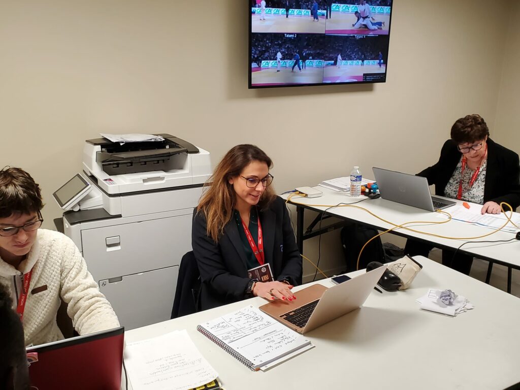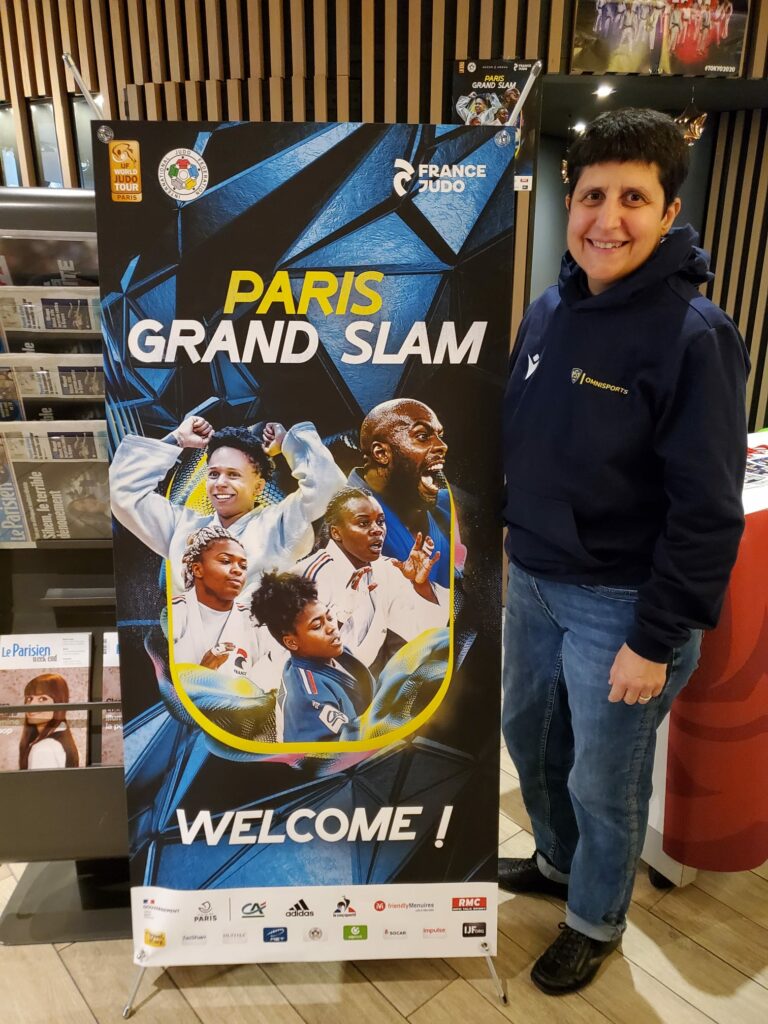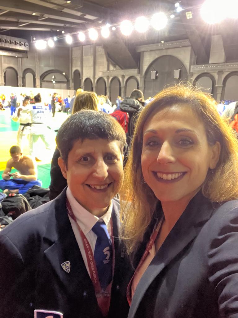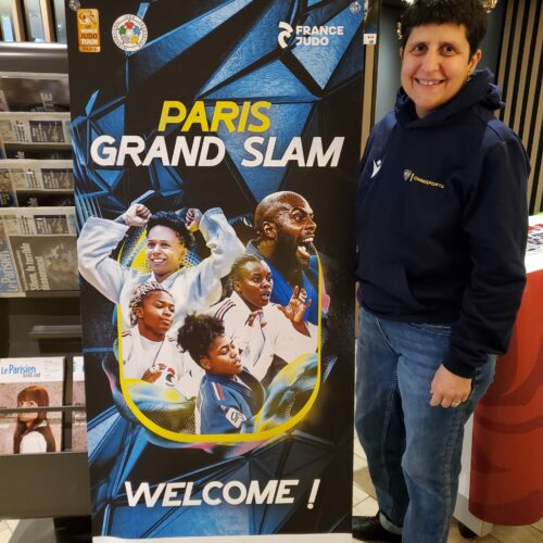 - Christelle Vialis, notre arbitre continental était dans l’équipe « aide arbitrage ». Elle a assuré le flux des judokas pour les pesées, la vérification des judogis (norme, taille) en chambre d’appel, le cadrage vidéo des combats pour l’aide aux arbitres sur le plateau de compétition… « C’est un immense honneur pour moi de pouvoir aider à l’organisation du Paris Grand Slam et de vivre ce gros évènement de l’intérieur. Grâce à cette mission, j’ai la chance d’être au plus près des champions et des entraîneurs français et étrangers, j’ai des étoiles plein les yeux ! »