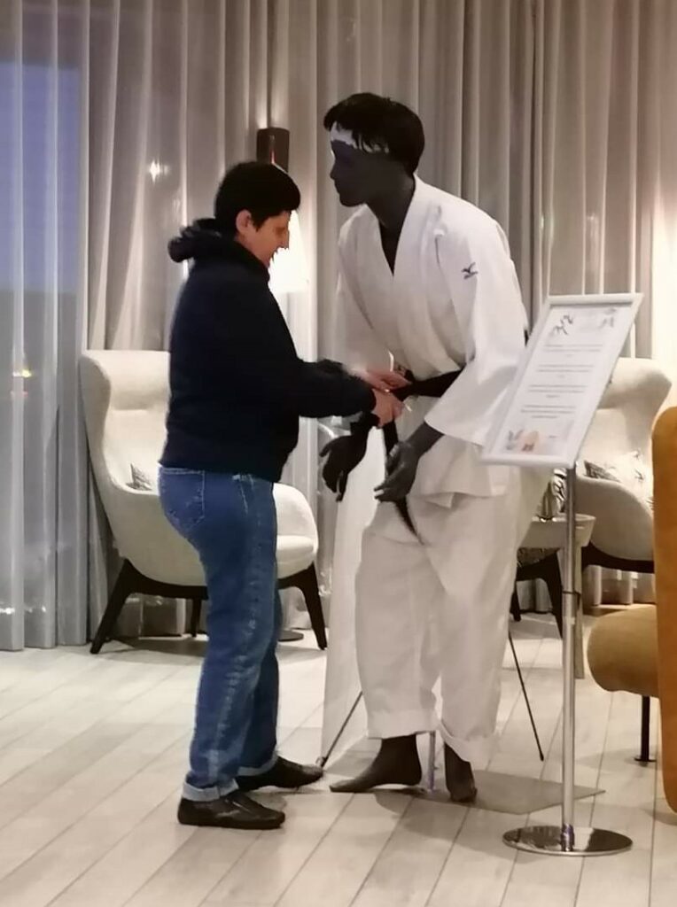 - Céline Andrieux, présidente de notre section judo, était référente du pôle hôtellerie, hébergement et restauration au sein des 7 hôtels officiels, des 82 délégations (judokas, staff, officiels) des Bénévoles, des organisateurs, des prestataires, des arbitres et commissaires et du STAFF de la fédération internationale de judo. Plus de 1200 personnes au total pour des durées de séjours de 2 à 10 jours. « Ma mission était la coordination de ce pôle en lien avec les hôtels, les participants et les Bénévolontaires en charge de l’accueil de l’hébergement qui avaient la responsabilité de guider les délégations tout au long de leur séjour. Ce fut une nouvelle et magnifique expérience riche de partage, de rencontres et d’émotions ! »