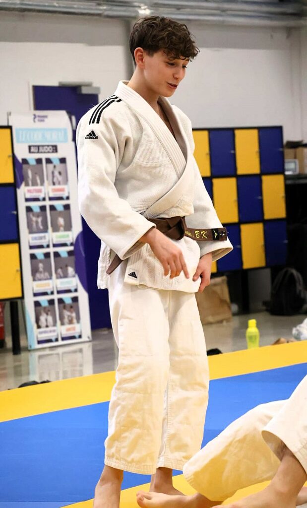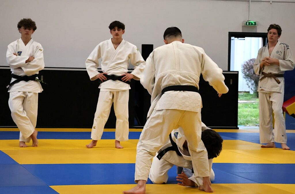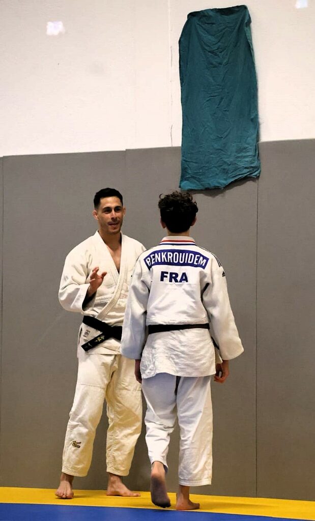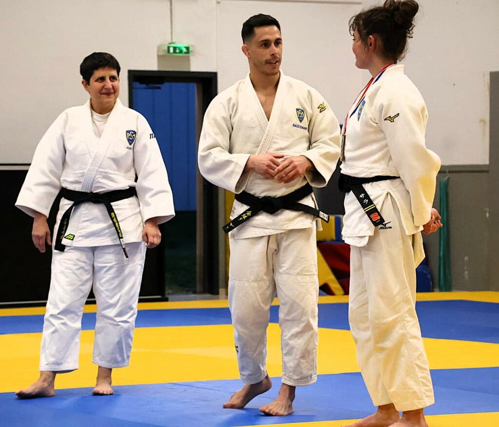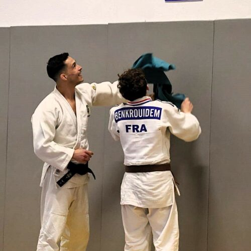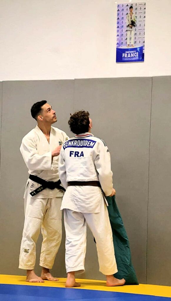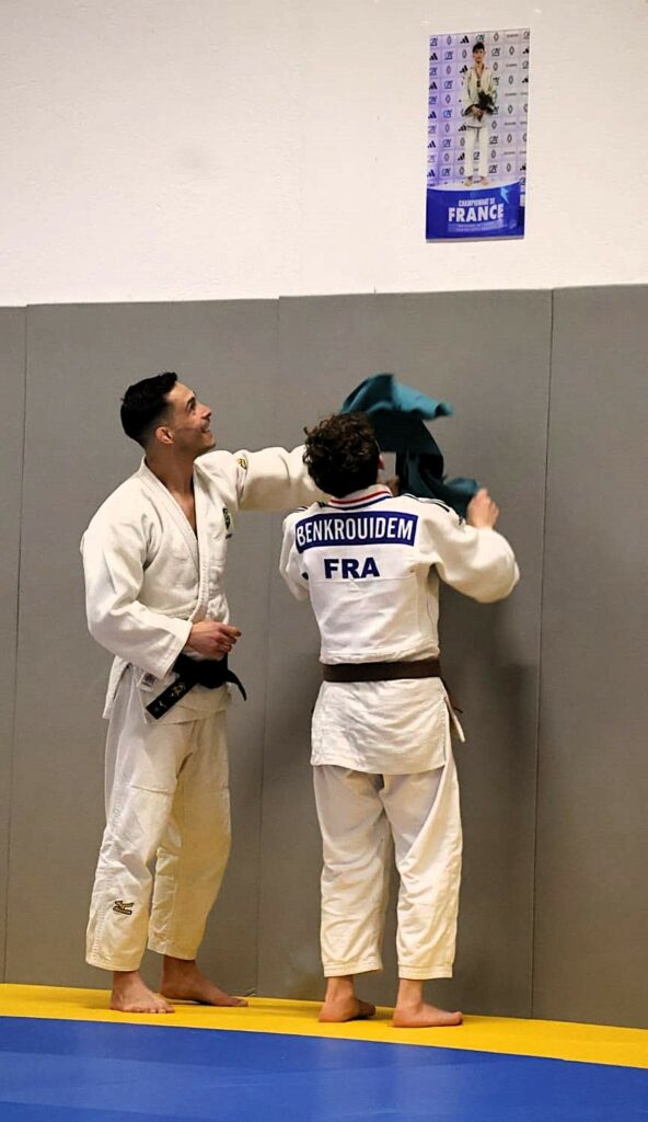 En présence de Kévin AZEMA, professeur de judo et triple champion de France séniors 1ère division, Christelle VIALIS, arbitre continental, Maëlle REAL ESTEVES, double championne de France Vétéran, et de nombreux judokas, Noham BENKROUIDEM a dévoilé ce vendredi 04 avril 2025 au dojo de l’ASM,