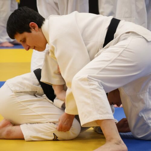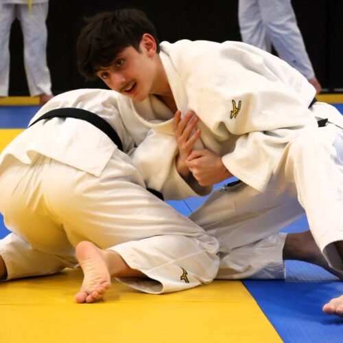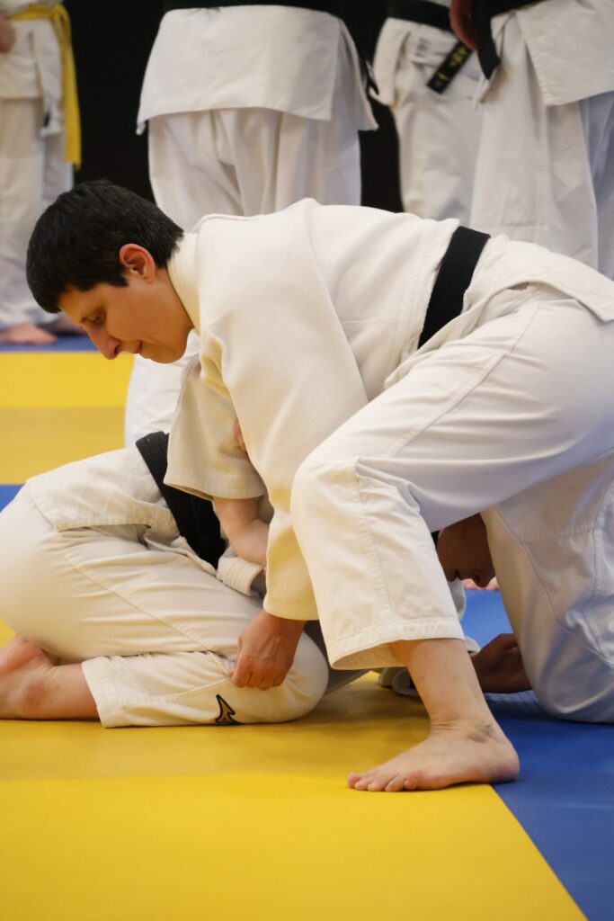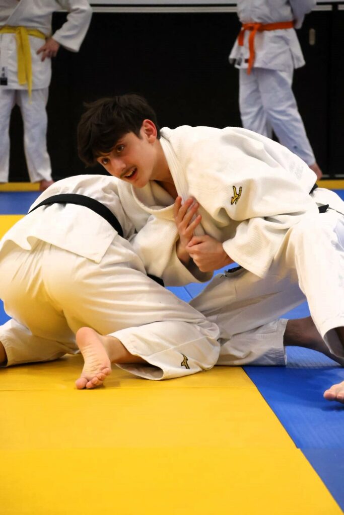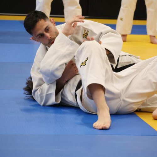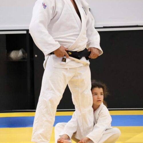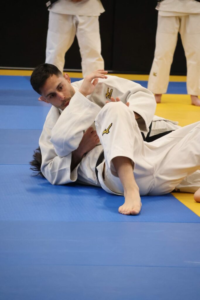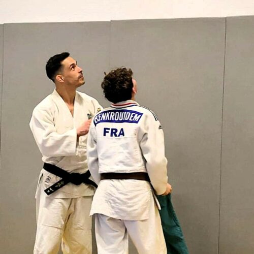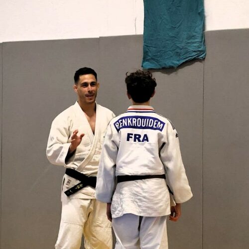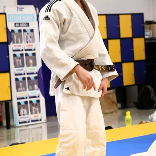 En présence de Kévin AZEMA, professeur de judo et triple champion de France séniors 1ère division, Christelle VIALIS, arbitre continental, Maëlle REAL ESTEVES, double championne de France Vétéran, et de nombreux judokas, Noham BENKROUIDEM a dévoilé ce vendredi 04 avril 2025 au dojo de l’ASM,
