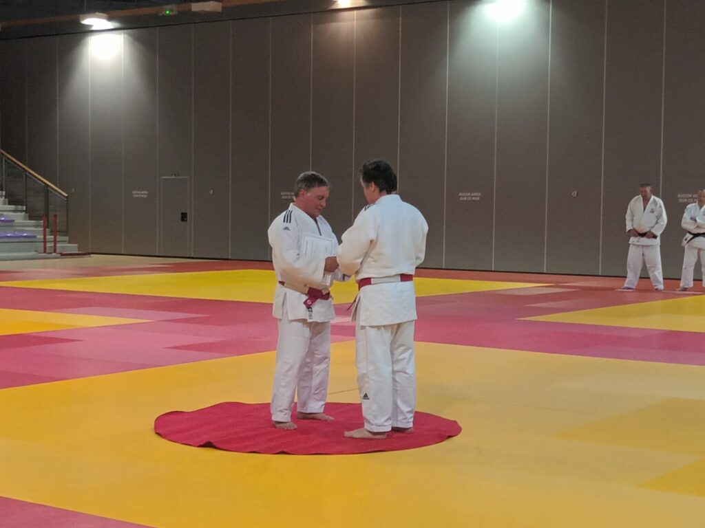 Pour clôturer cette belle cérémonie, nos deux hauts gradés asémistes 6ème dan, Philippe COULON et Marcelin ROBALO, ont démontré en parfaite harmonie un kata de haut niveau. Les judokas et les spectateurs présents ont pu mesurer la richesse de l’exercice.