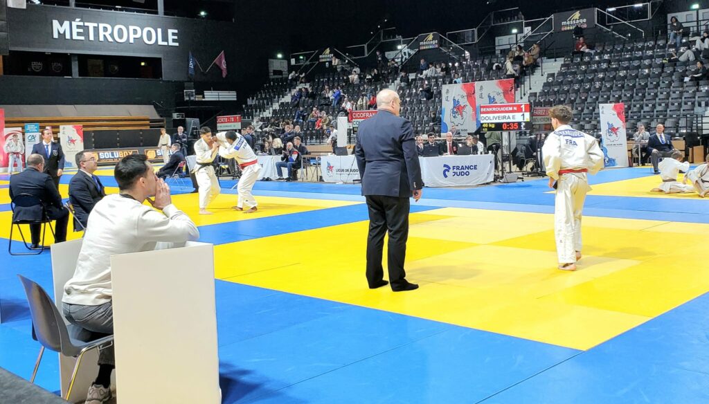 Notre club 🟡🔵 avait 6 judokas inscrits : Norah Gosset en -63kg, Noham Benkrouidem -46kg, Inès Bennacer -52kg et Anis Bennacer -50kg, coachés par Kévin AZEMA.