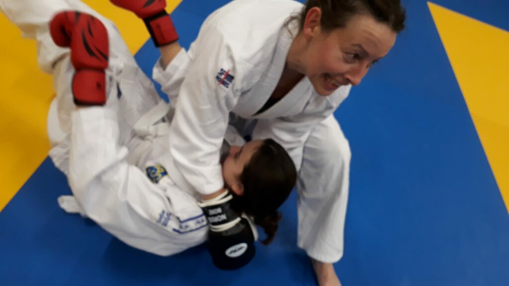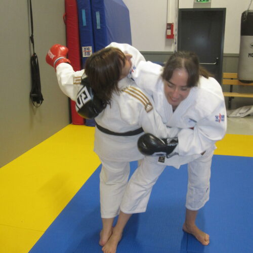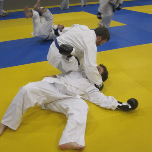 - Une deuxième partie projection: Cette partie ressemble plus au combat de Judo avec moins de restriction. Le but étant de faire chuter l’adversaire sur le ventre ou sur le dos.