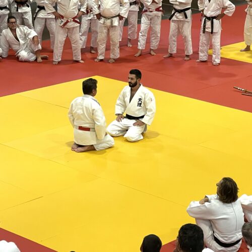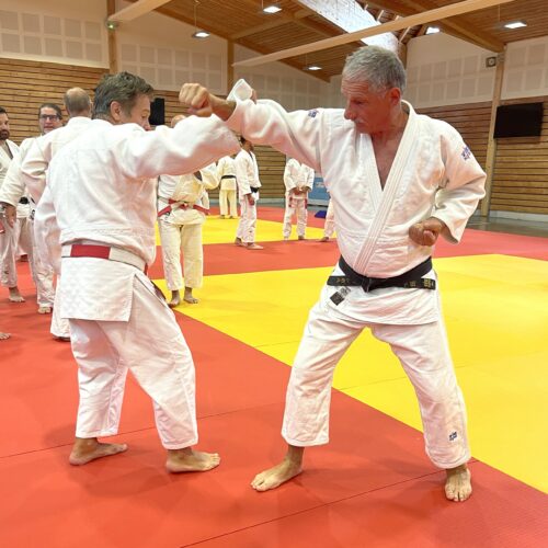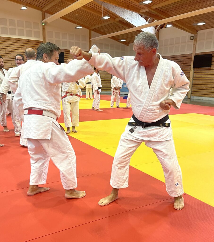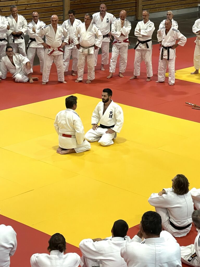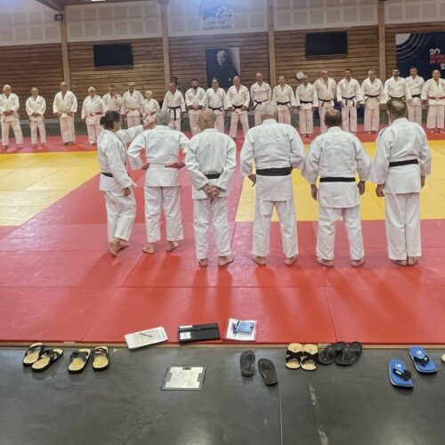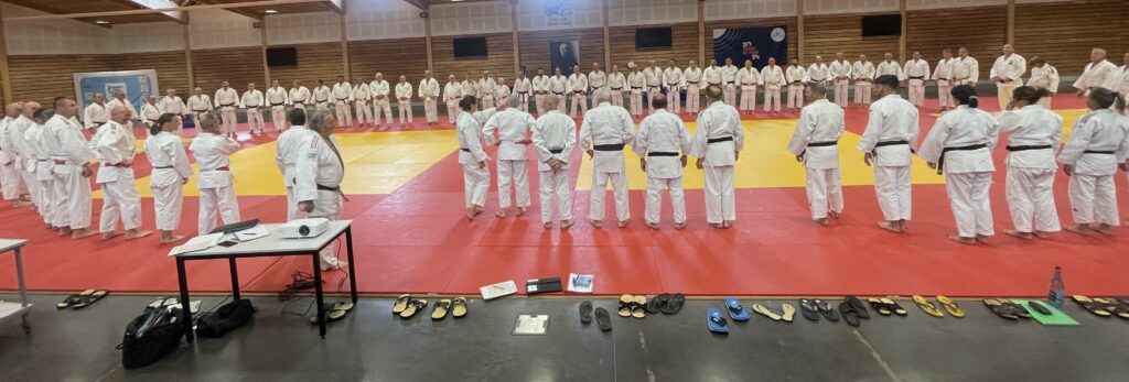 La partie pratique, dédiée aux katas et à leurs critères d’évaluation, a été animée par Philippe. Les participants ont également eu l’occasion de découvrir le Go-no-kata, la « forme de la force et de la flexibilité » 💪