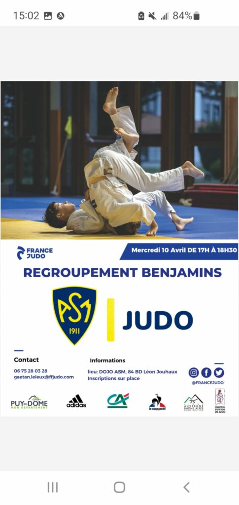 Mercredi 10 avril au dojo 💛💙 a eu lieu un Super entraînement proposé par Kévin AZEMA, professeur à l’ASM et champion de France séniors 1D, lors du regroupement départemental PDD Benjamins🥋.