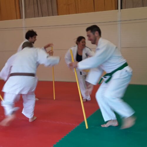 - Samedi après-midi : cours de pieds poings avec amené au sol dirigé par Gilles Gourdy, professeur de jujitsu à l’ASM