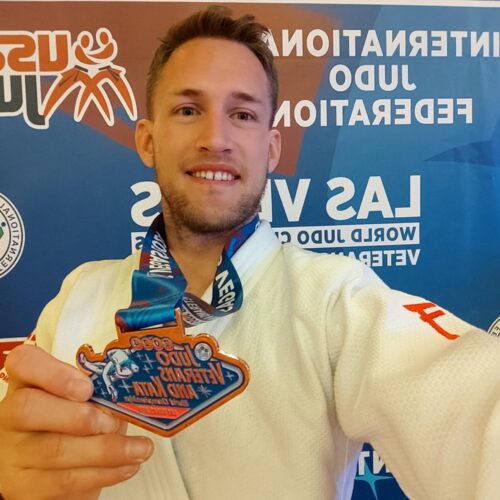 Toanui nous livre ses impressions : « Je me suis senti plutôt bien sur les mains afin d’imposer mon Kumi kata. En demi, le combat était extrêmement physique, le Brésilien était très fort. J’ai commis une seule erreur et elle m’a été fatale, je perds ce combat 😔 Cependant, j’arrive à me remobiliser afin de décrocher la breloque ! Je suis très content de revenir au club avec le bronze. Le niveau était très relevé à Las Vegas ! Les championnats Vétérans ne sont pas si pépère que ça 🤣 »