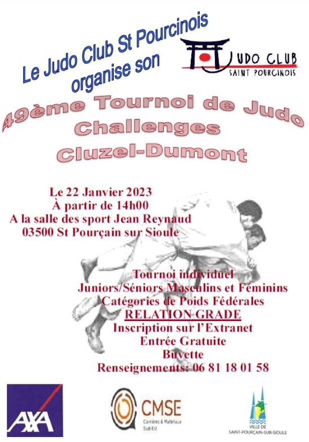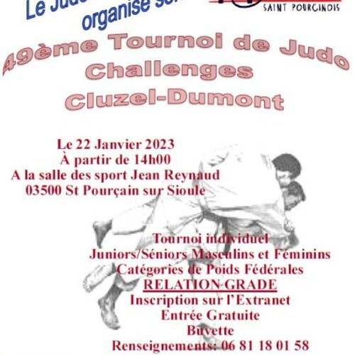 Dimanche 22 janvier 2023 avait lieu le 49ème tournoi 🥋 de St Pourçain-sur-Sioule (03) juniors et séniors.