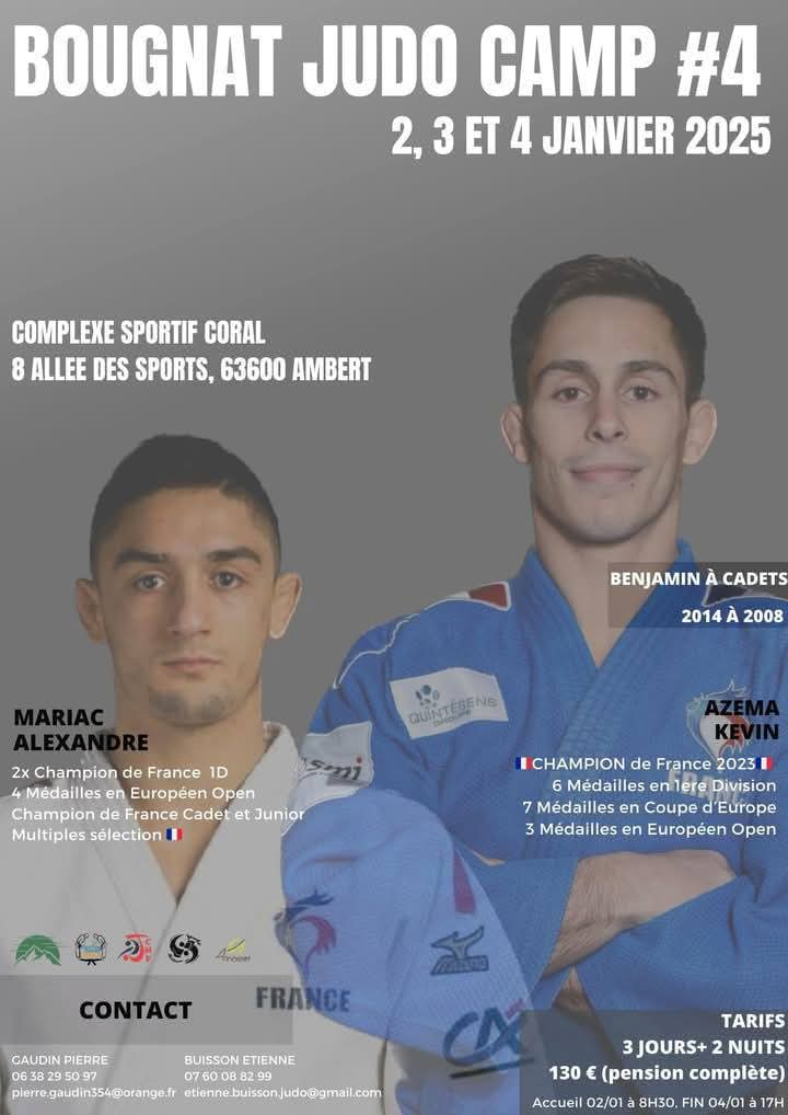 📌 Du 02 au 04 janvier 2025, dix-sept asémsites, de benjamins à cadets, ont effectué un stage de perfectionnement à Ambert sous la direction de Kévin AZEMA et Alexandre MARIAC 👍. Ce Bougnat Judo Camp 4ème édition, a réuni plus de 70 judokas en herbe venant des régions de l’AURA et de l’Occitanie.