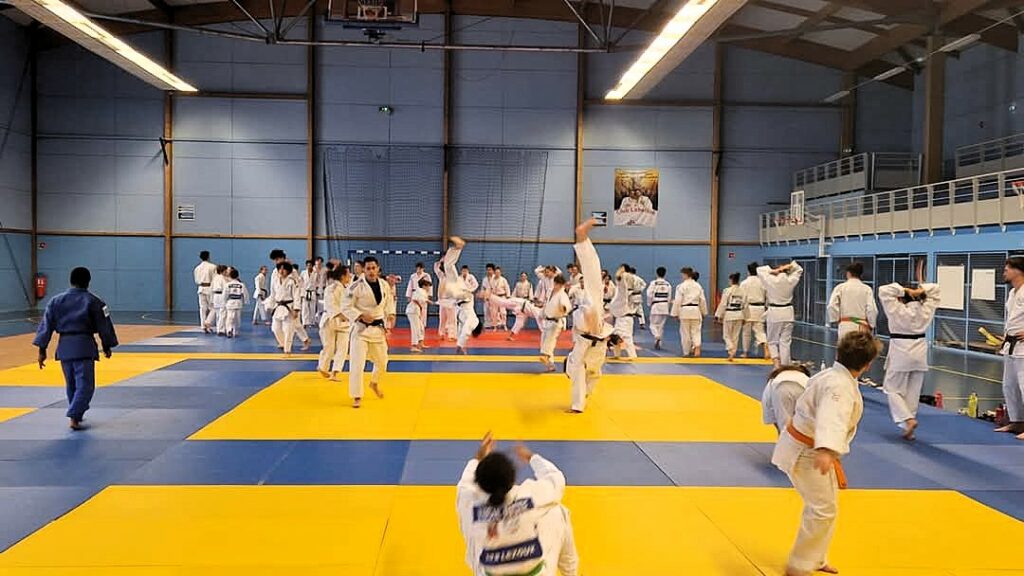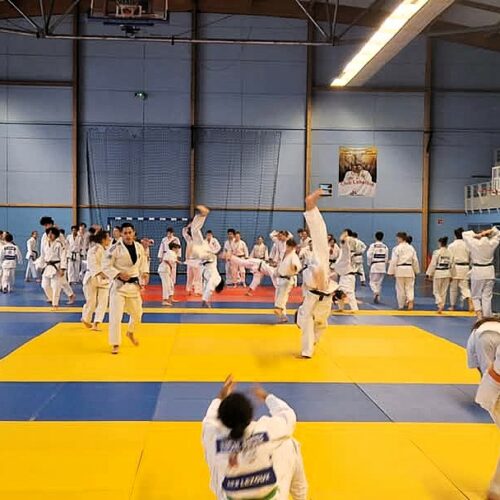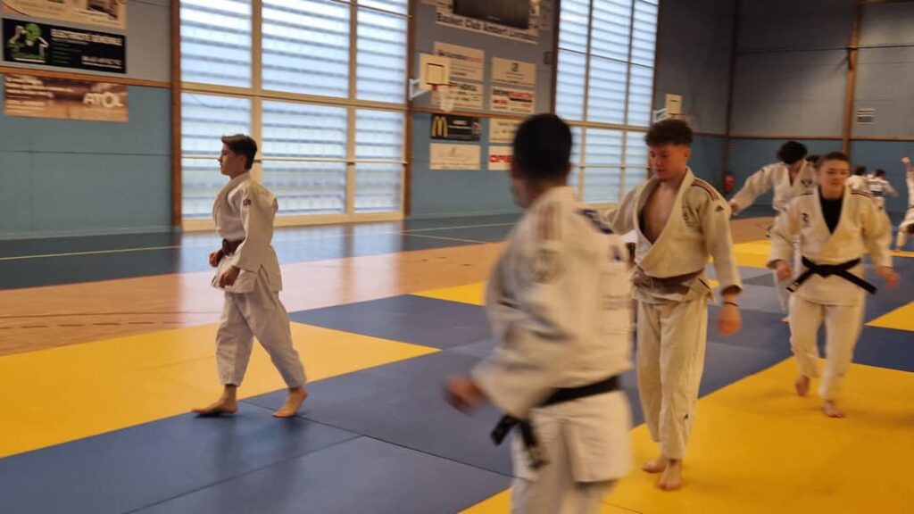 Nos jeunes « jaune et bleu » ont pu améliorer leurs techniques de judo et progresser en randori (combats) en affrontant d’autres judokas de leur âge 💪. Une mention particulière à Ulysse PAVIA 🥋💛💙 qui a été Uke (partenaire) en or pour les démonstrations de Kévin et Alexandre 👏. Les stagiaires ont également effectué des sports collectifs.