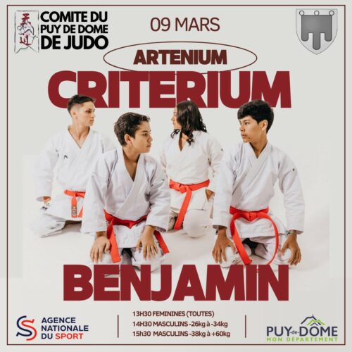 Ce dimanche 09 mars 2025 avait lieu le championnat départemental individuels (M&F) benjamins 🥋 à l’Arténium de Ceyrat.