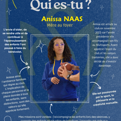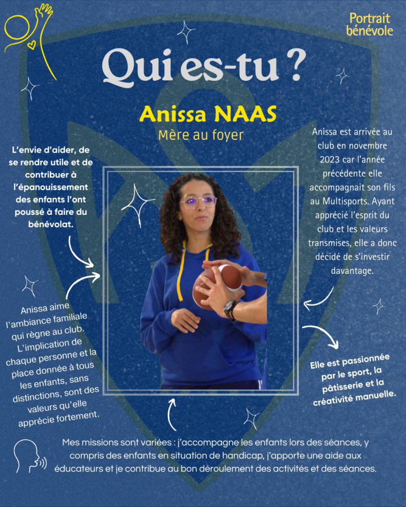 Pour ce 5ème portrait, nous vous présentons Anissa, bénévole depuis trois saisons. Elle nous parlera de ses missions au sein de la section, de ses passions, et comment elle est arrivée au Multisports.