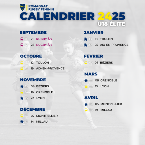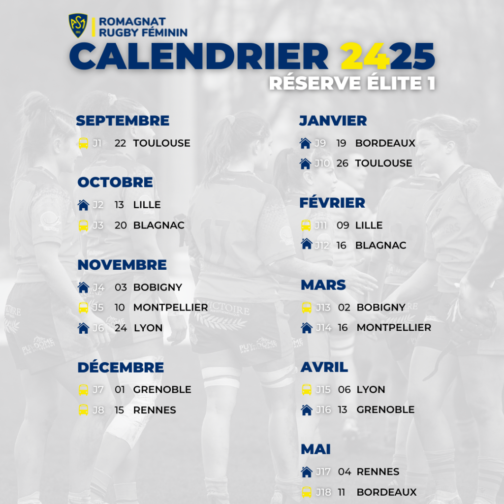 Découvrez les calendriers de nos équipes Élite 1, Réserve Élite 1 et U18 Élite pour la saison 24/25 !