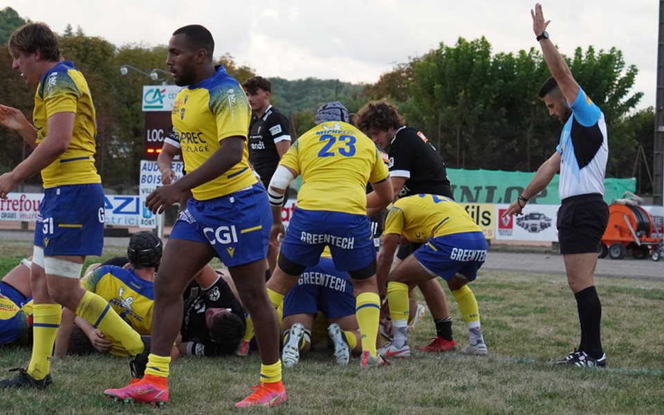 Le début fut très difficile pour nos joueurs qui encaissèrent trois essais en un quart d’heure, et eurent bien du mal à entrer dans le match.
