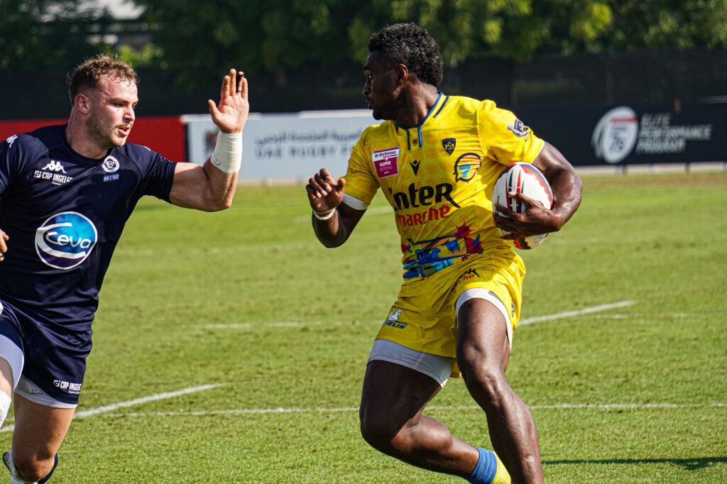Le tournoi se terminera donc à la 14ème place pour les jaune bleu, un résultat sportif peu satisfaisant pour Paul Albaladejo, qui regrette notamment les trop nombreux cartons jaunes reçus durant les trois jours, sans pour autant oublier les différents objectifs de ce déplacement Dubaïote. Sur le plan de l’évaluation de nos joueurs pépites du centre de formation, comme sur le partenariat avec Nevers ou Aurillac, le rugby à 7 semble avoir rempli les missions qui lui étaient confiées. Même constat sur le segment de la détection de jeunes joueurs, avec la participation de 6 prospects étrangers, qui auront été évalués dans le cadre d’une compétition internationale de haut niveau, ce que permet le rugby à 7.