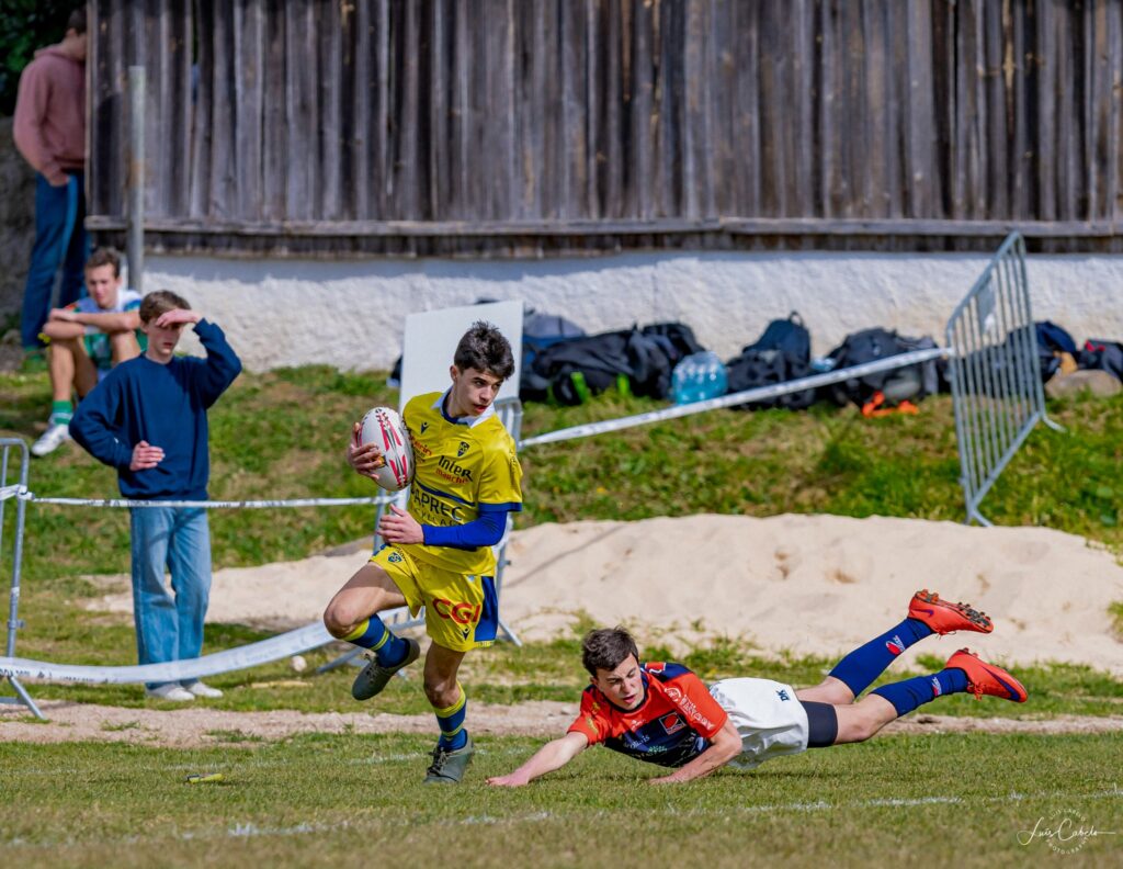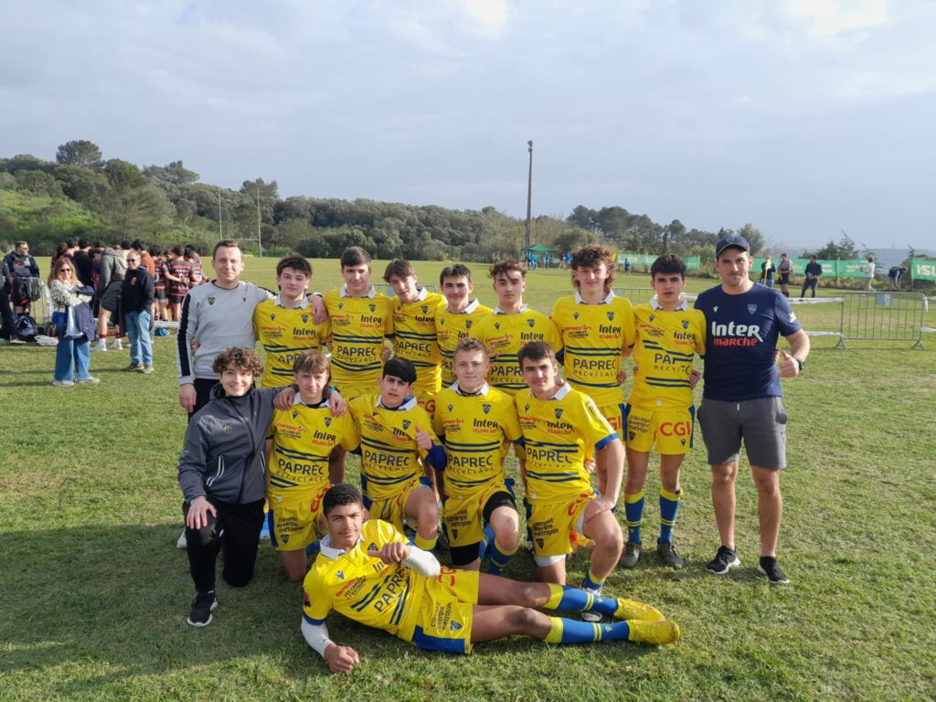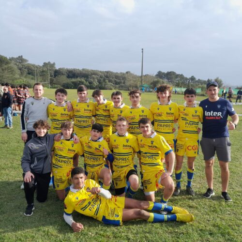 Un quart abordé de manière exemplaire, pour une équipe qui n’avait jamais connu de compétition sur deux jours, mis à part les joueurs ayant participé au Super Challenge de France en U14. La victoire face à l’équipe portugaise de Sao Miguel sur le score de 39 à 0 permettait d’aborder la demi-finale avec confiance. Une confiance malheureusement insuffisante pour renverser le futur vainqueur de la compétition, le CDUL (Portugal). La remobilisation du groupe après cette défaite était attendue par l’encadrement, et fut au rendez-vous, pour décrocher une médaille de bronze méritée.