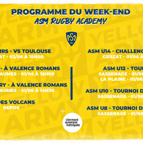 ASM RUGBY ACADEMY : LE PROGRAMME DU WEEK-END !
