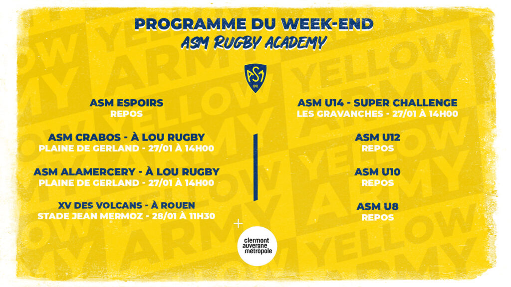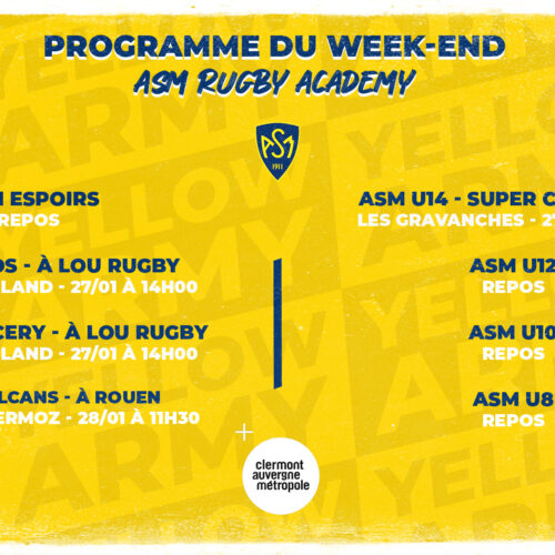 ASM Rugby Academy : Le programme du week-end