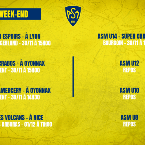 L’ensemble des équipes du Pôle Jeunes sur le pont, les U14 en Super Challenge de France… Retrouvez le programme du week-end de la formation ASMiste !